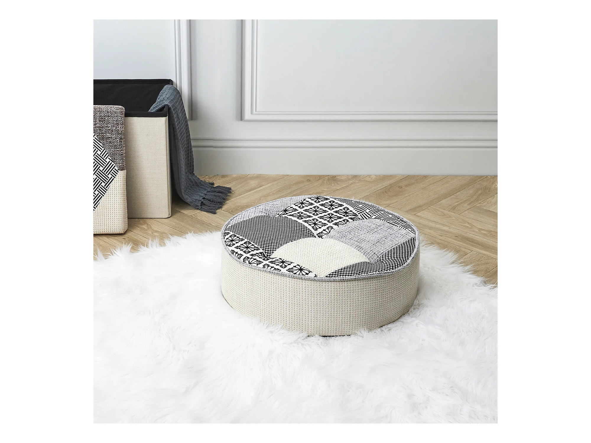 Pouf Rond Patchwork Gris Gris, Multicolore