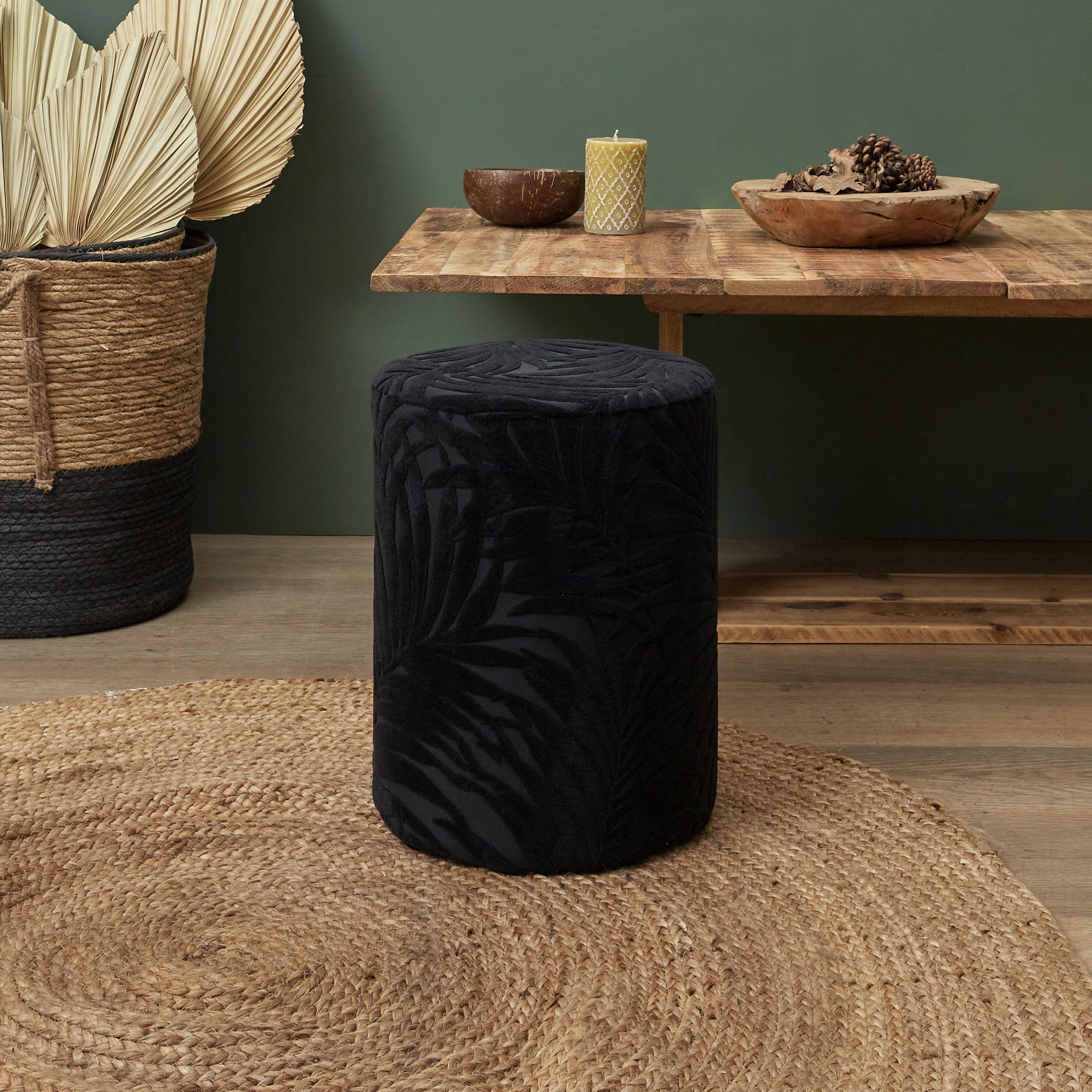 Pouf en velours - noir - MANAO
