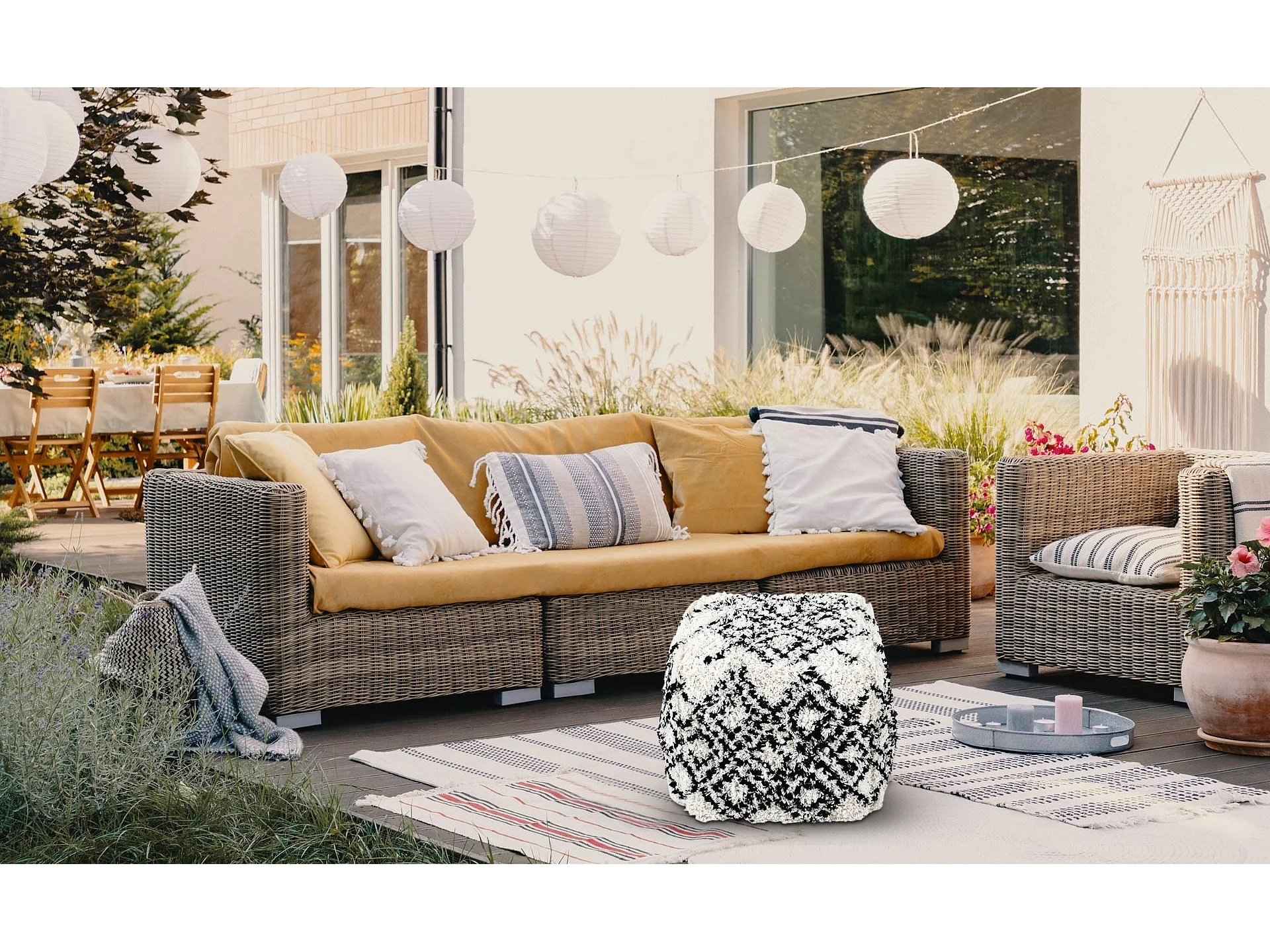 Pouf en Tissu "Lhassa" 40cm Blanc & Noir