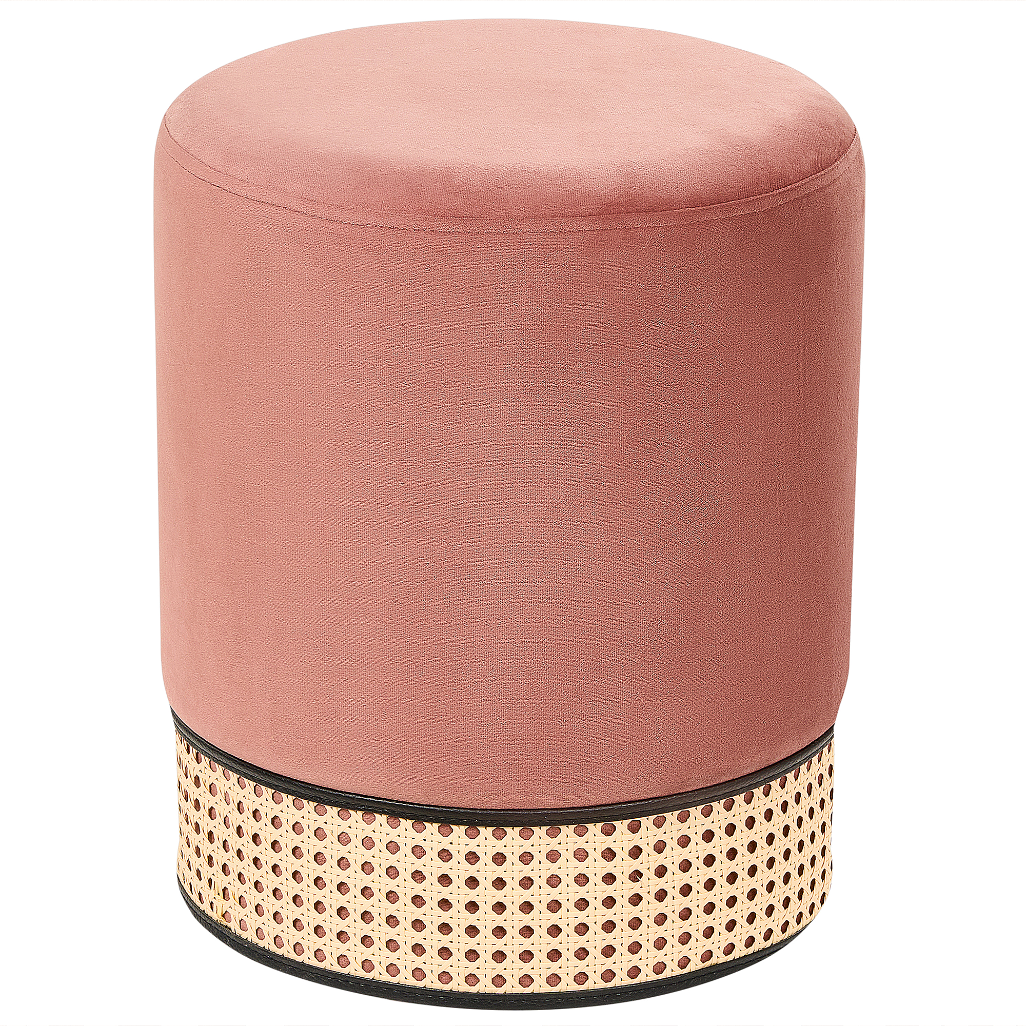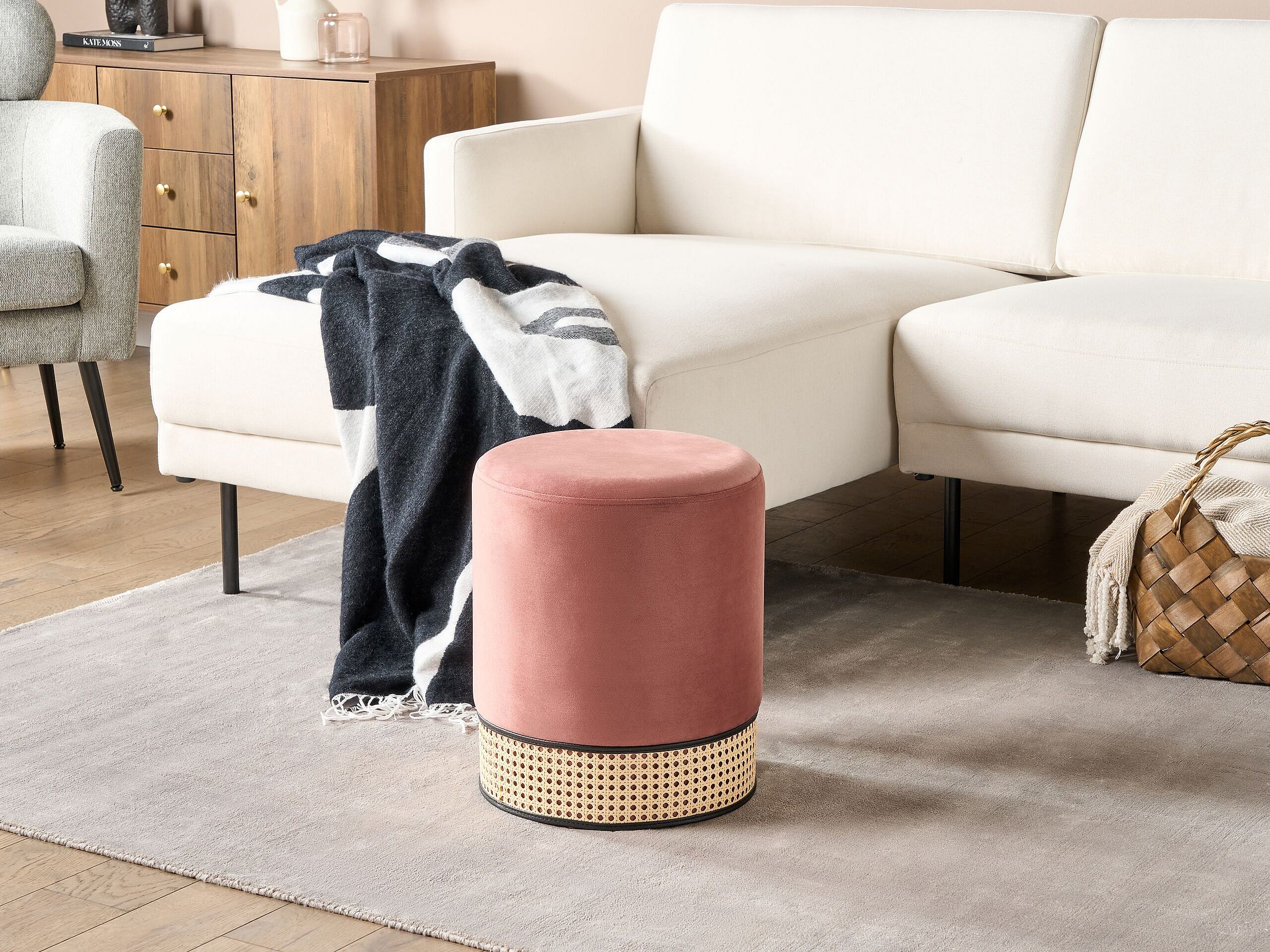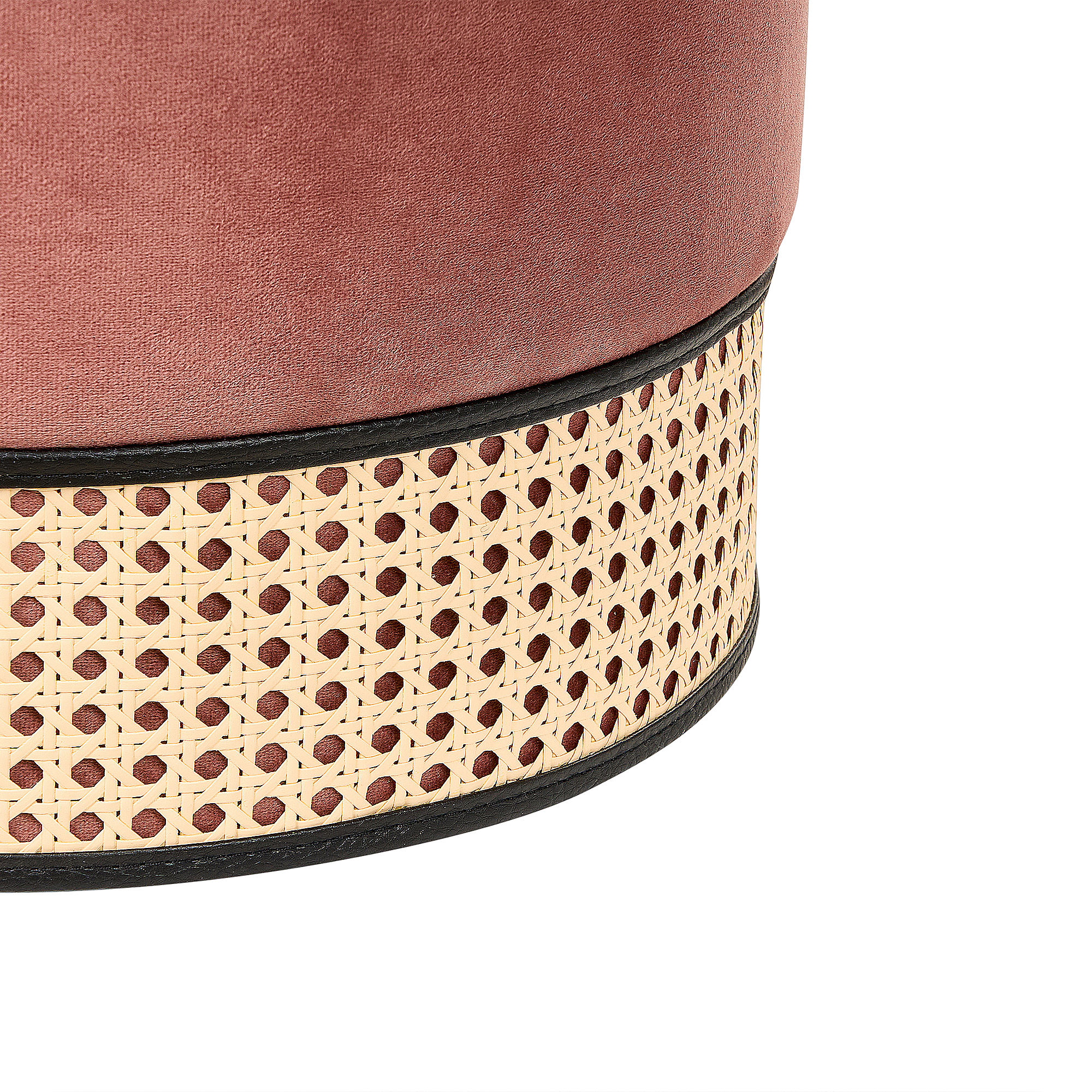 Pouf rond velours rose et pied métal doré mat Kila 39cm