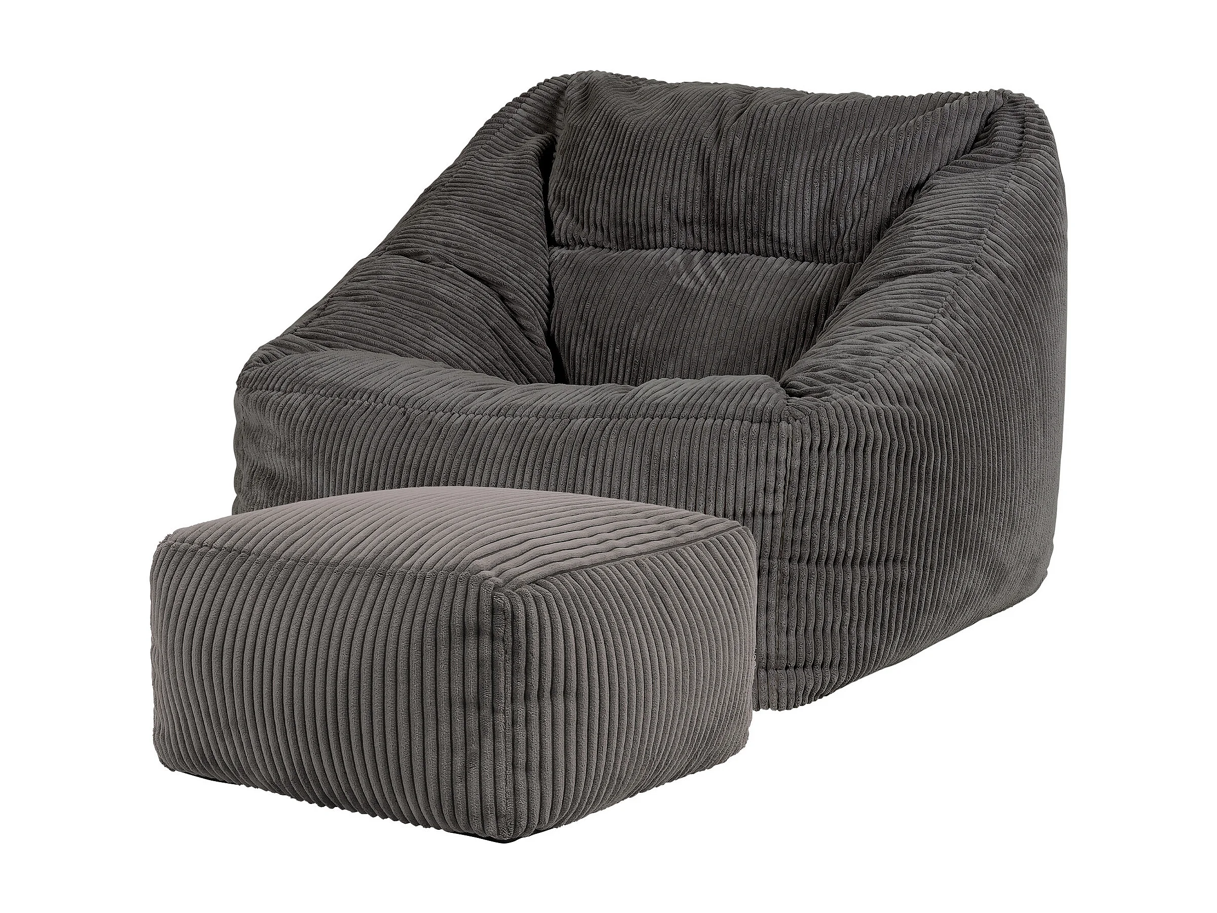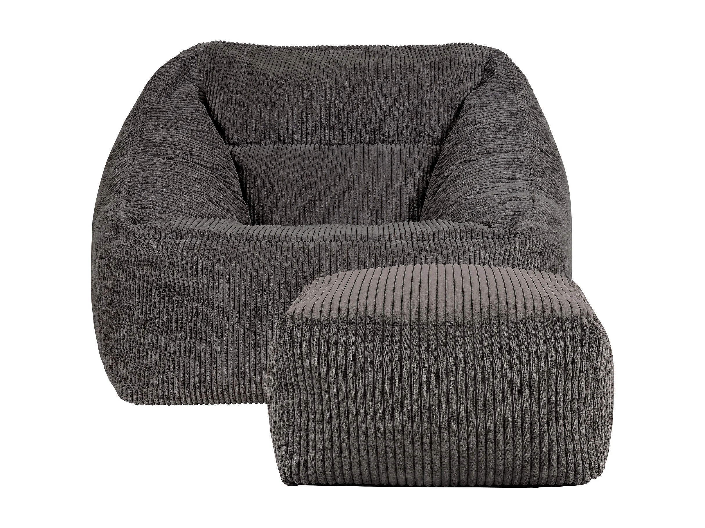Pouf fauteuil et son repose-pieds carré velours côtelé gris anthracite, salon ou chambre - NATALIA