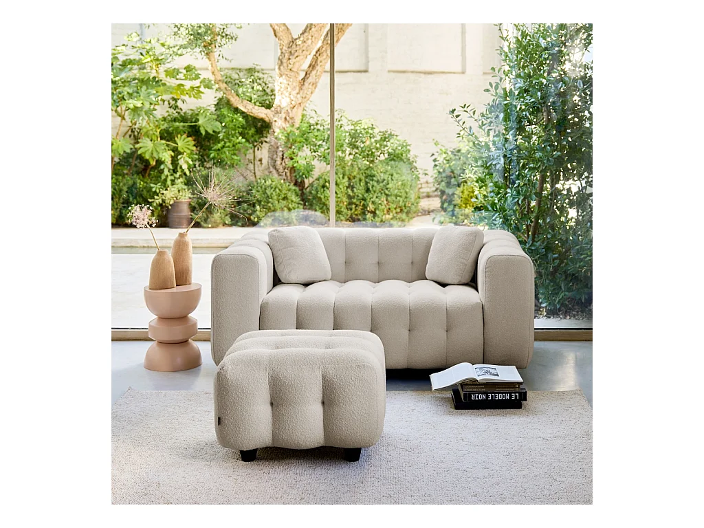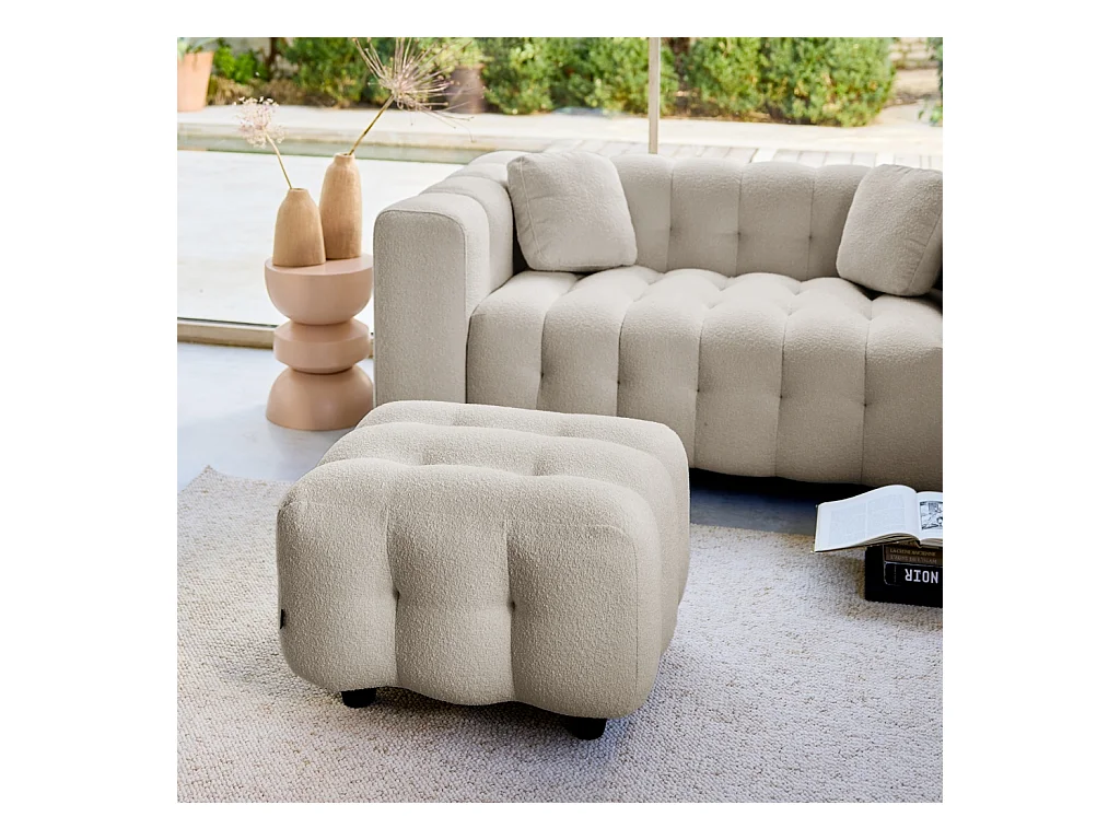 Pouf. module pour canapé. repose-pieds pour canapé 2 places en bouclette texturée beige L 69 x P 59 x H 48cm - Leon