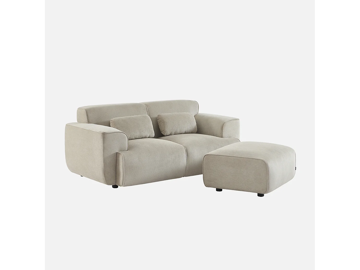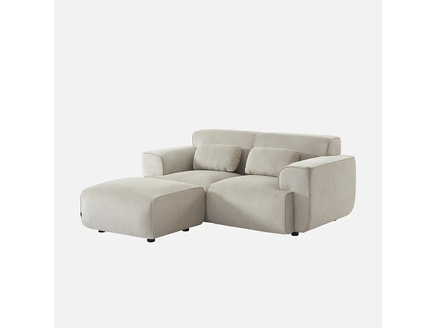 Pouf. module pour canapé. repose-pieds pour canapé 2 places en velours côtelé greige. L 76 x P 70 x H 41cm - Wallas