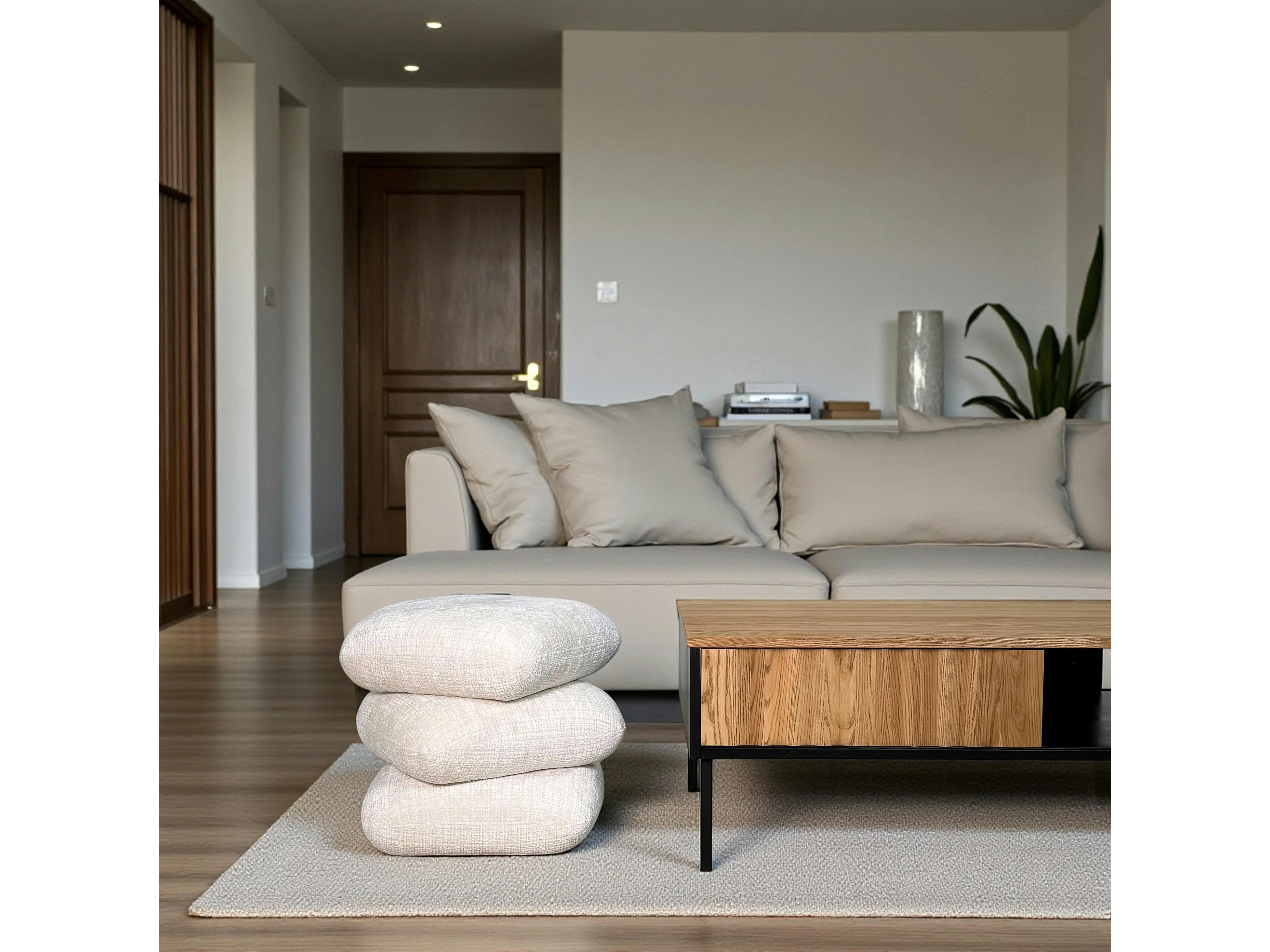 Pouf Design avec Dossier "Bouclette" 52cm Blanc