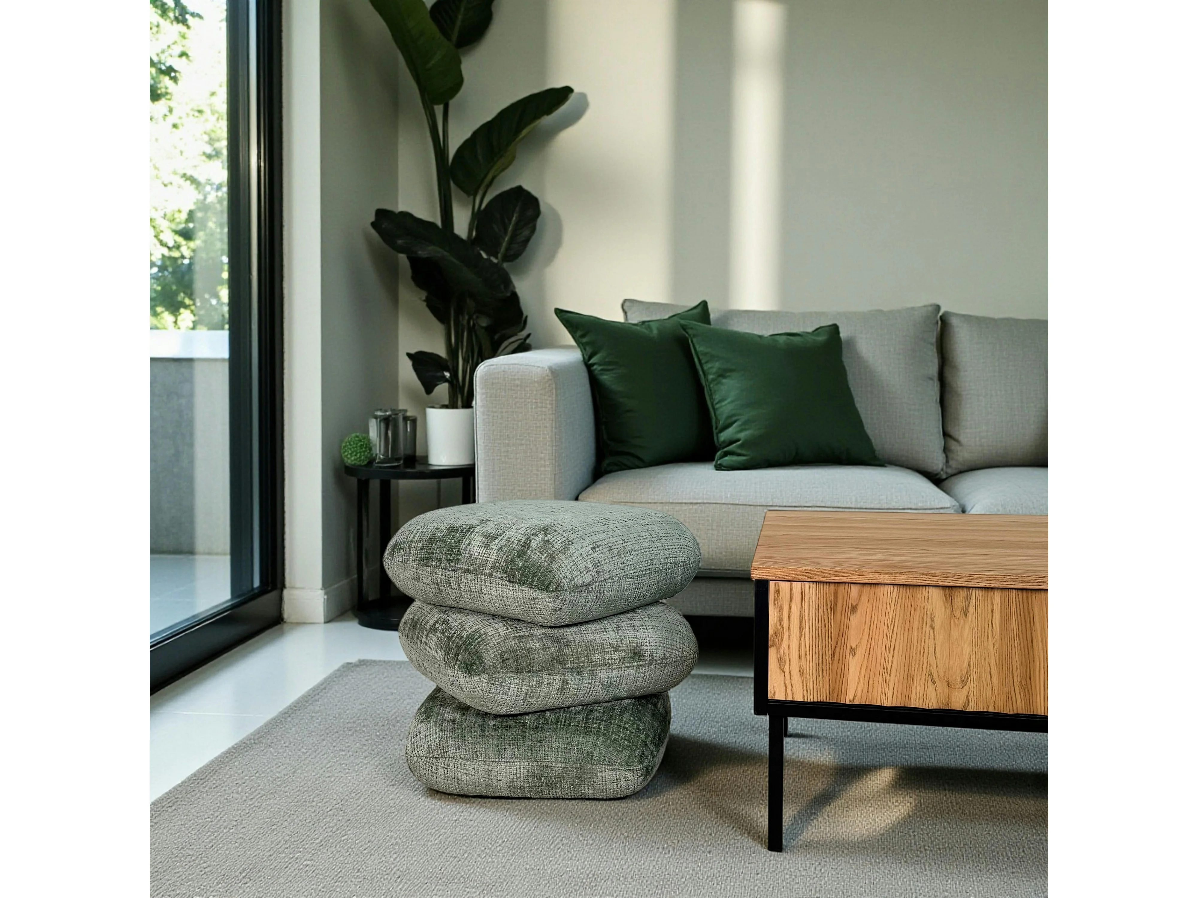 CONNIE - Pouf Rond 41cm Tissu Bouclé Vert Olive