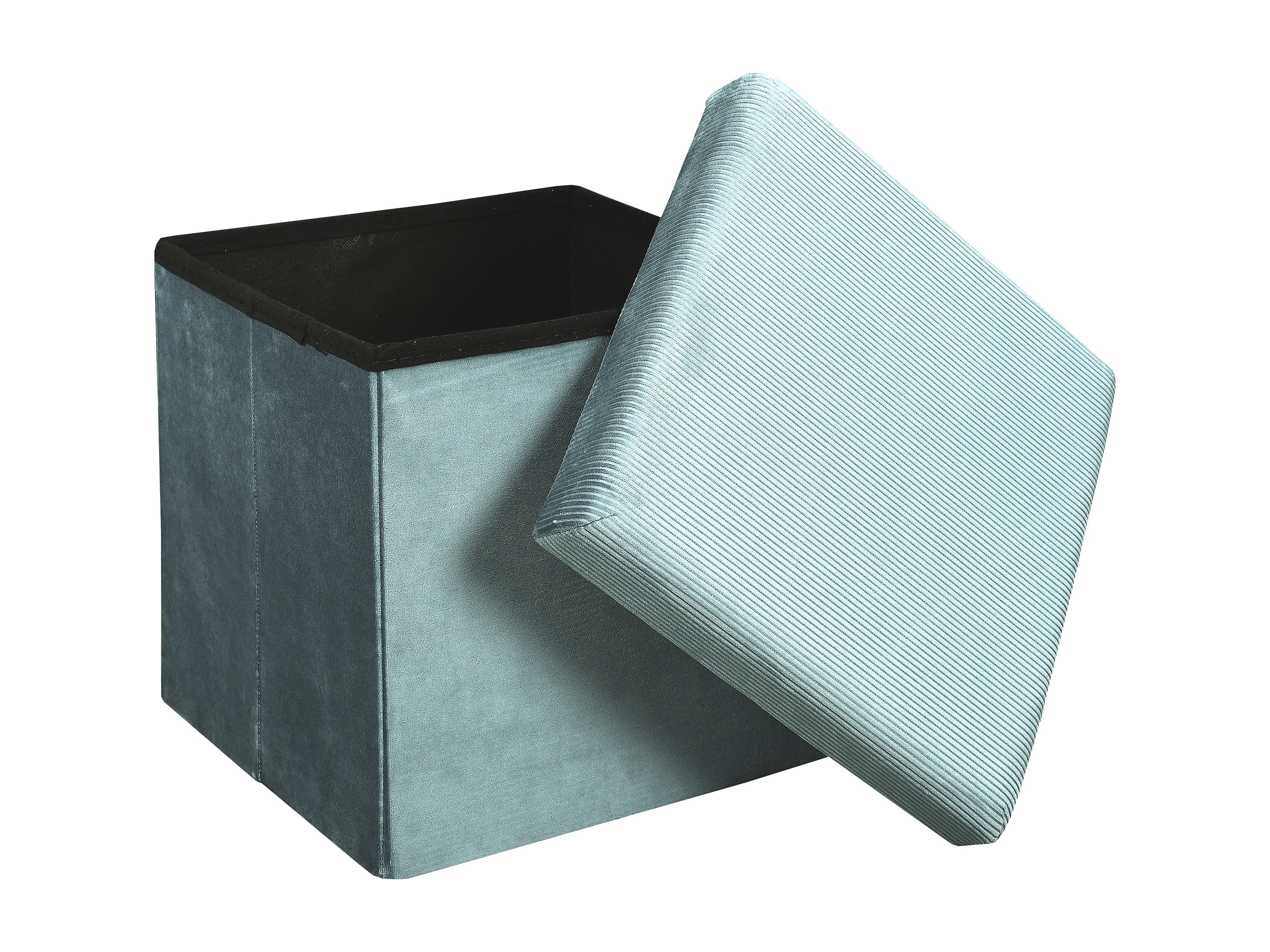 Pouf Coffre Pliable en Velours Côtelé Bleu Canard - NEIRA