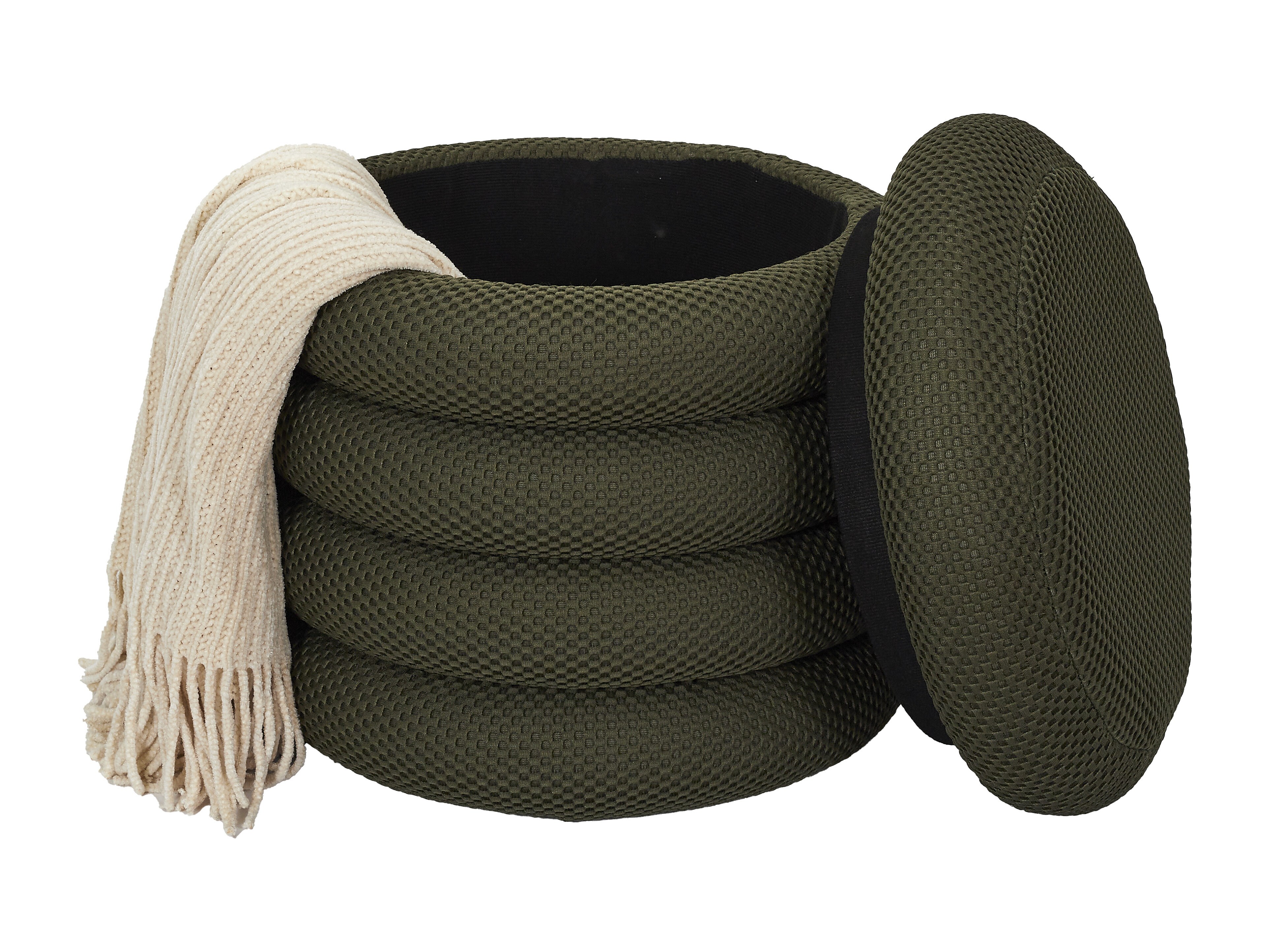 CONNIE - Pouf Rond 41cm Tissu Bouclé Vert Olive