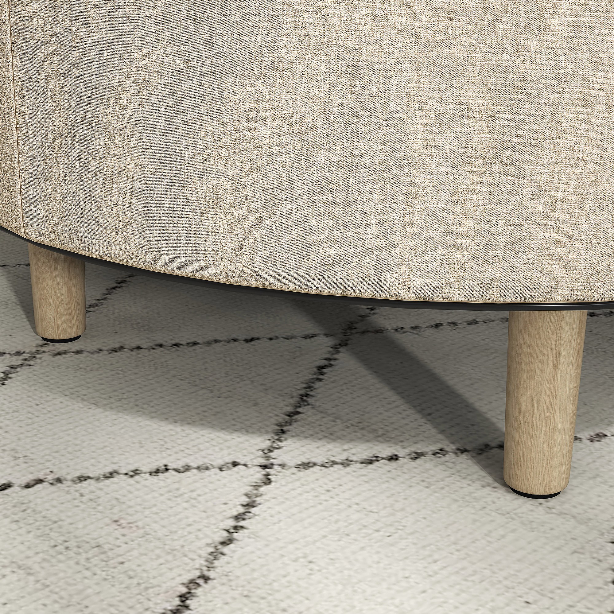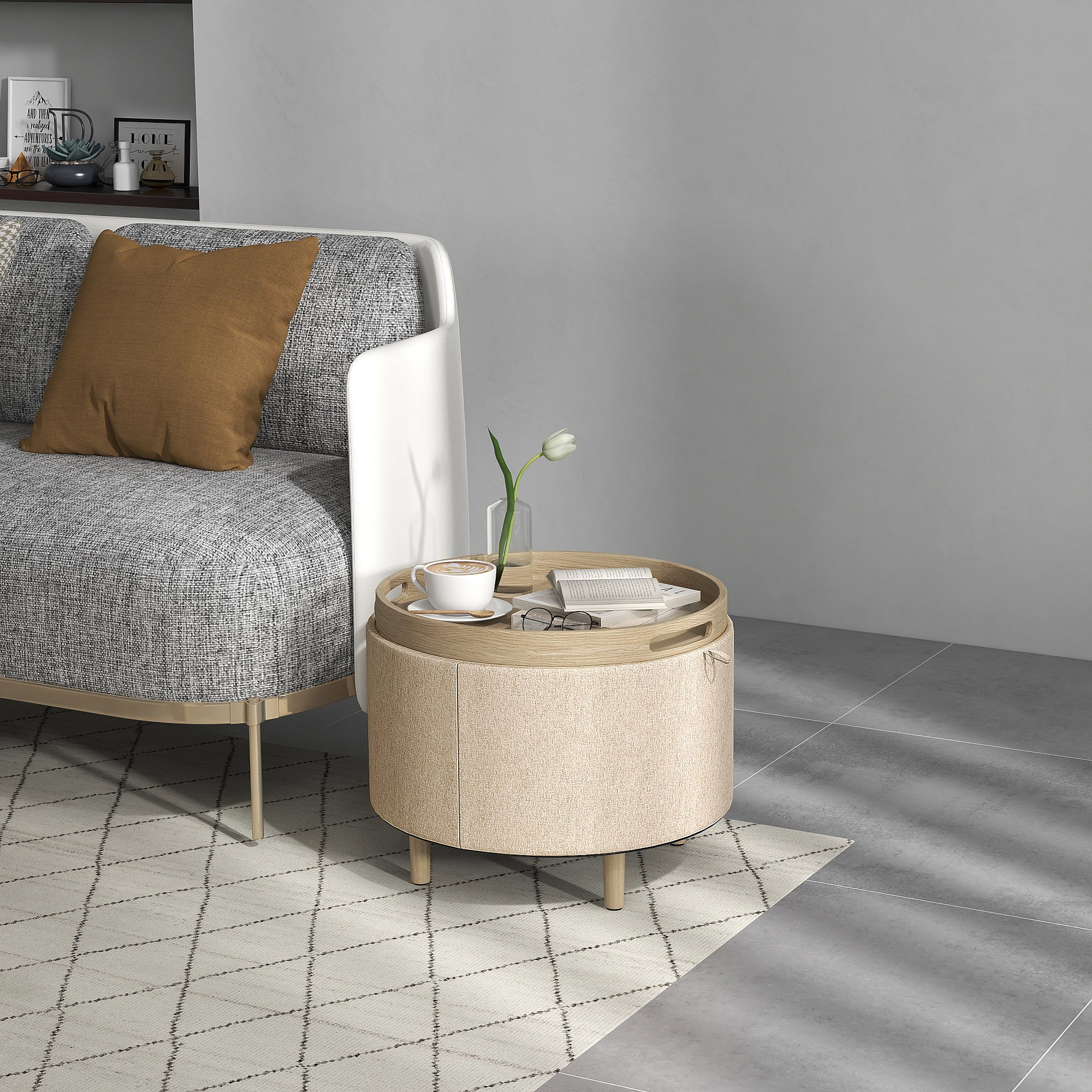 Pouf repose-pied tabouret avec coffre de rangement - plateau réversible - pieds bois tissu aspect lin beige