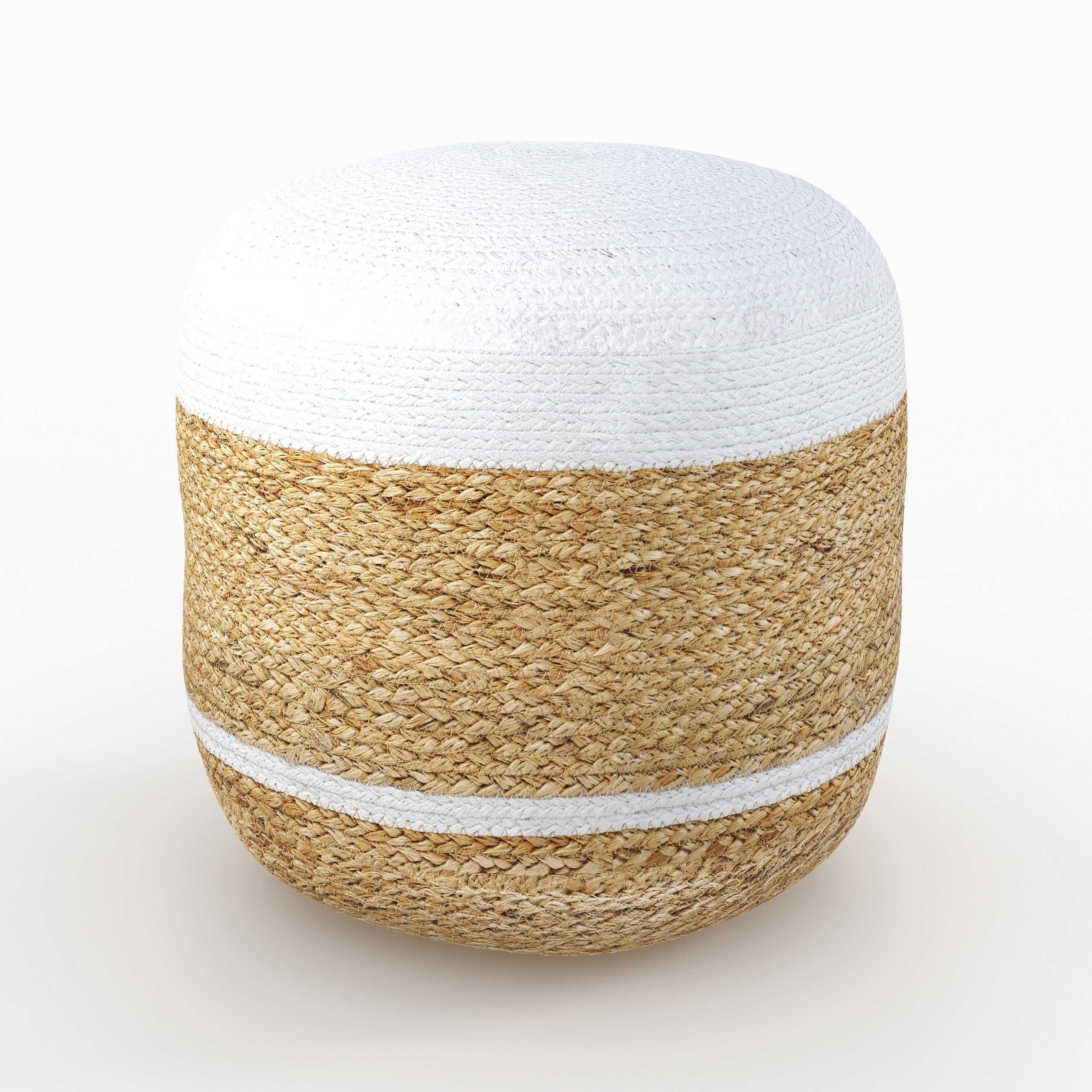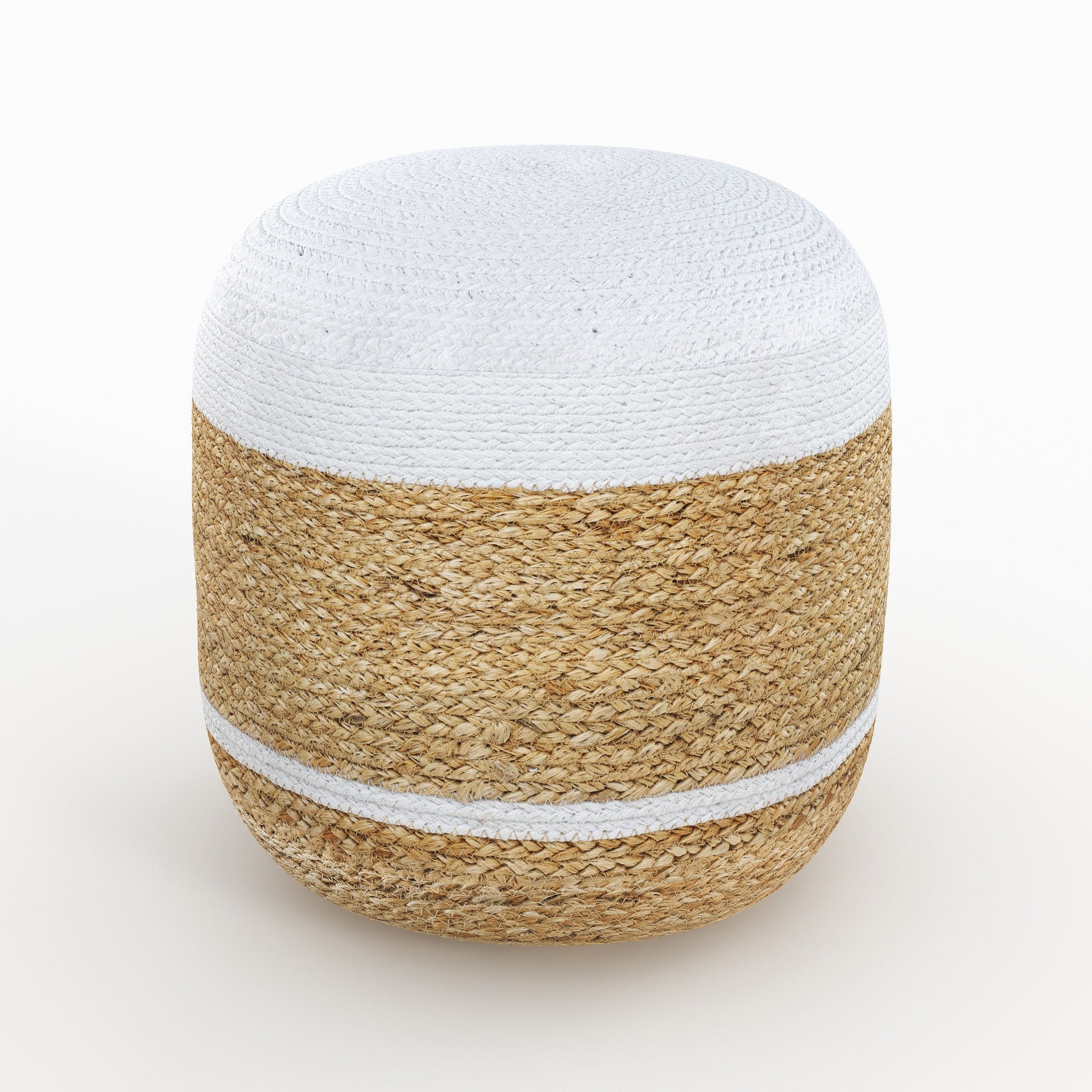 Pouf rond rayé en jute et blanc D40 cm - Billy