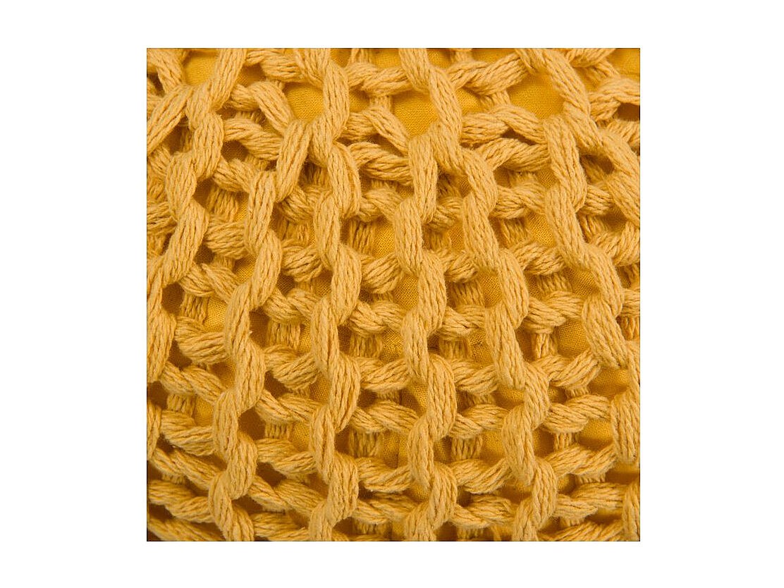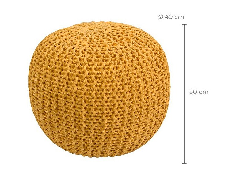 Pouf tricot rond en coton jaune moutarde D40 cm - Elisa