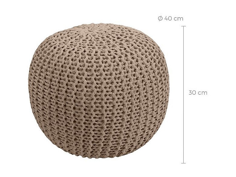 Pouf tricot rond en coton taupe D40 cm - Elisa