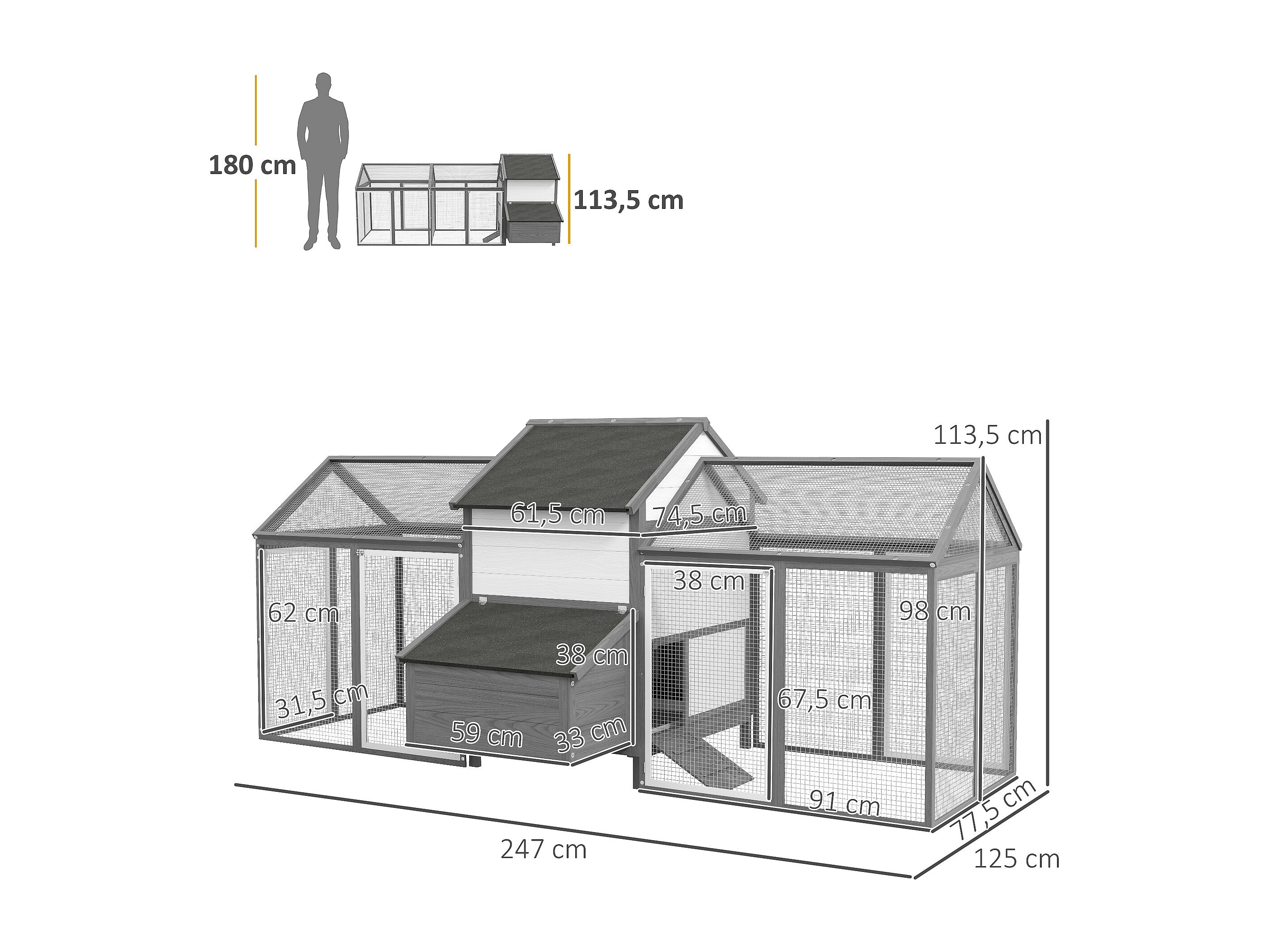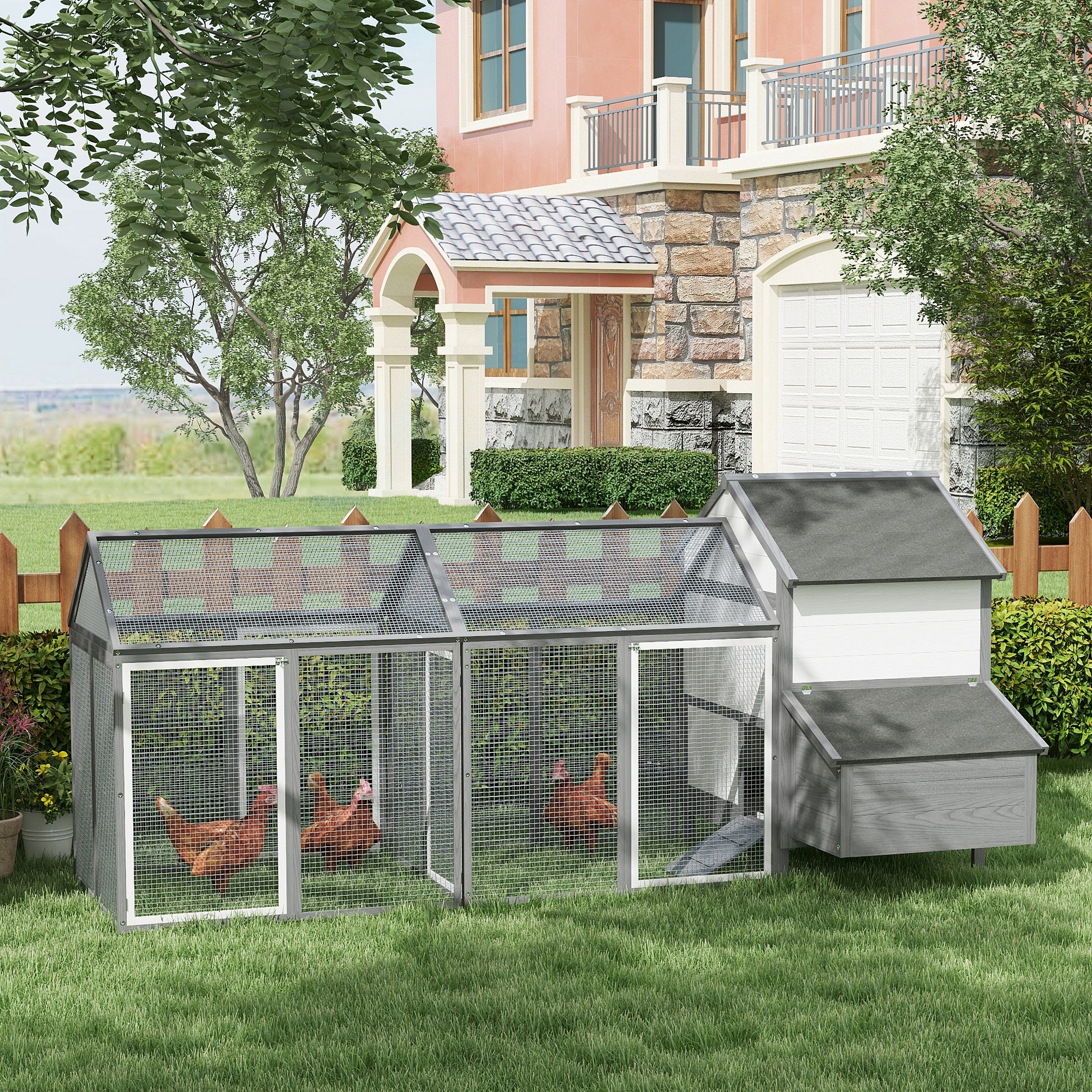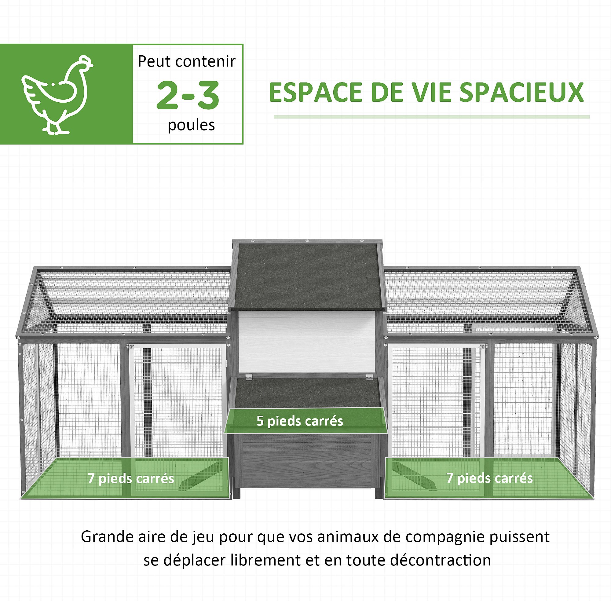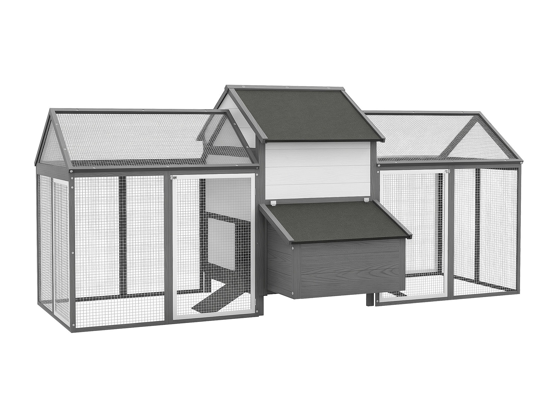 Poulailler en bois 2 enclos modulables niche pondoir gris