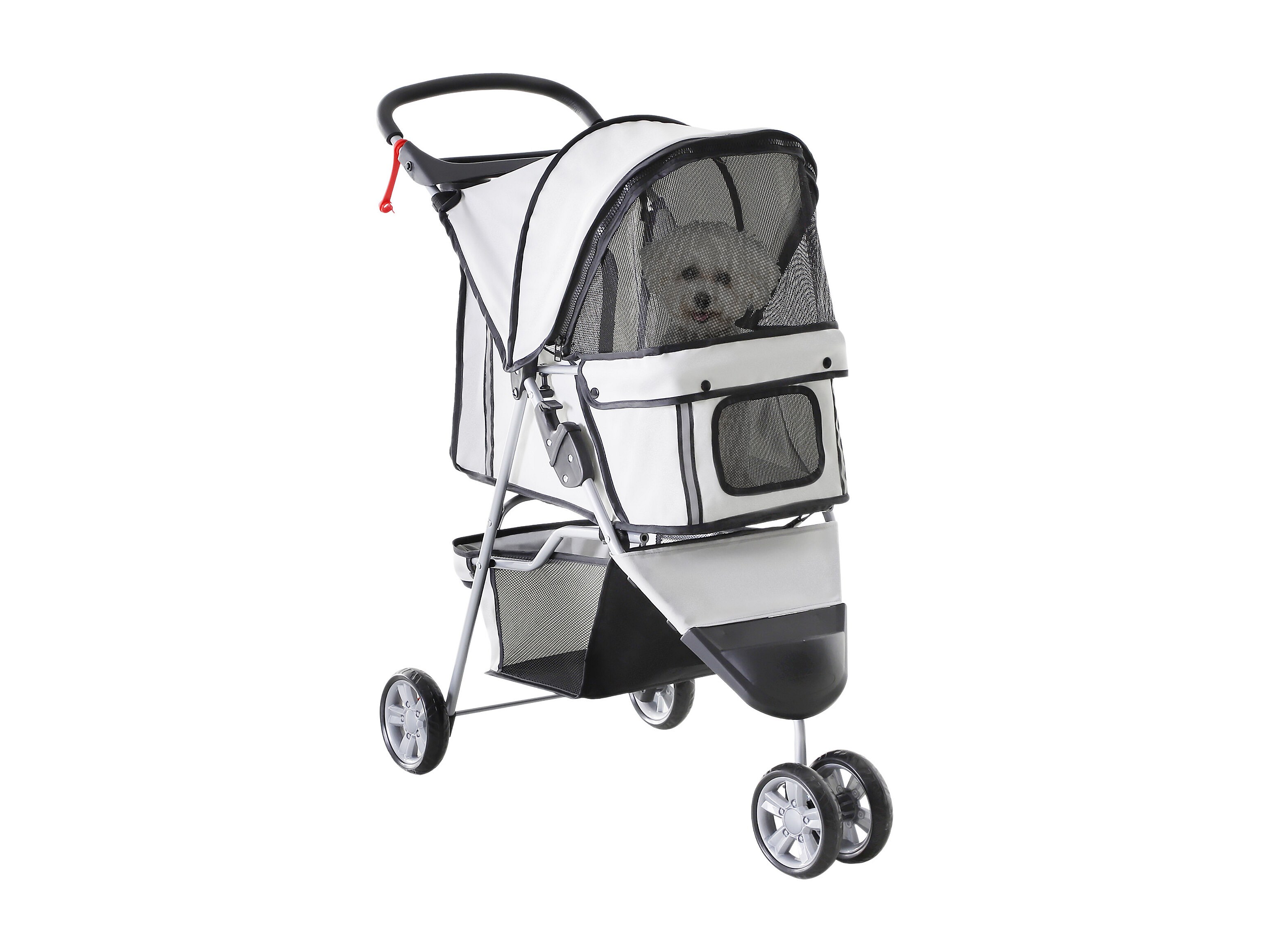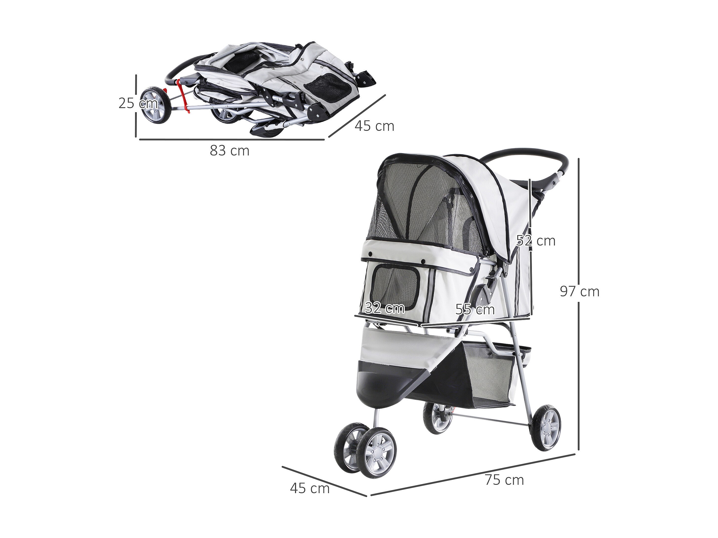 Poussette pliable animaux chien chat nacelle amovible 4 roues gris