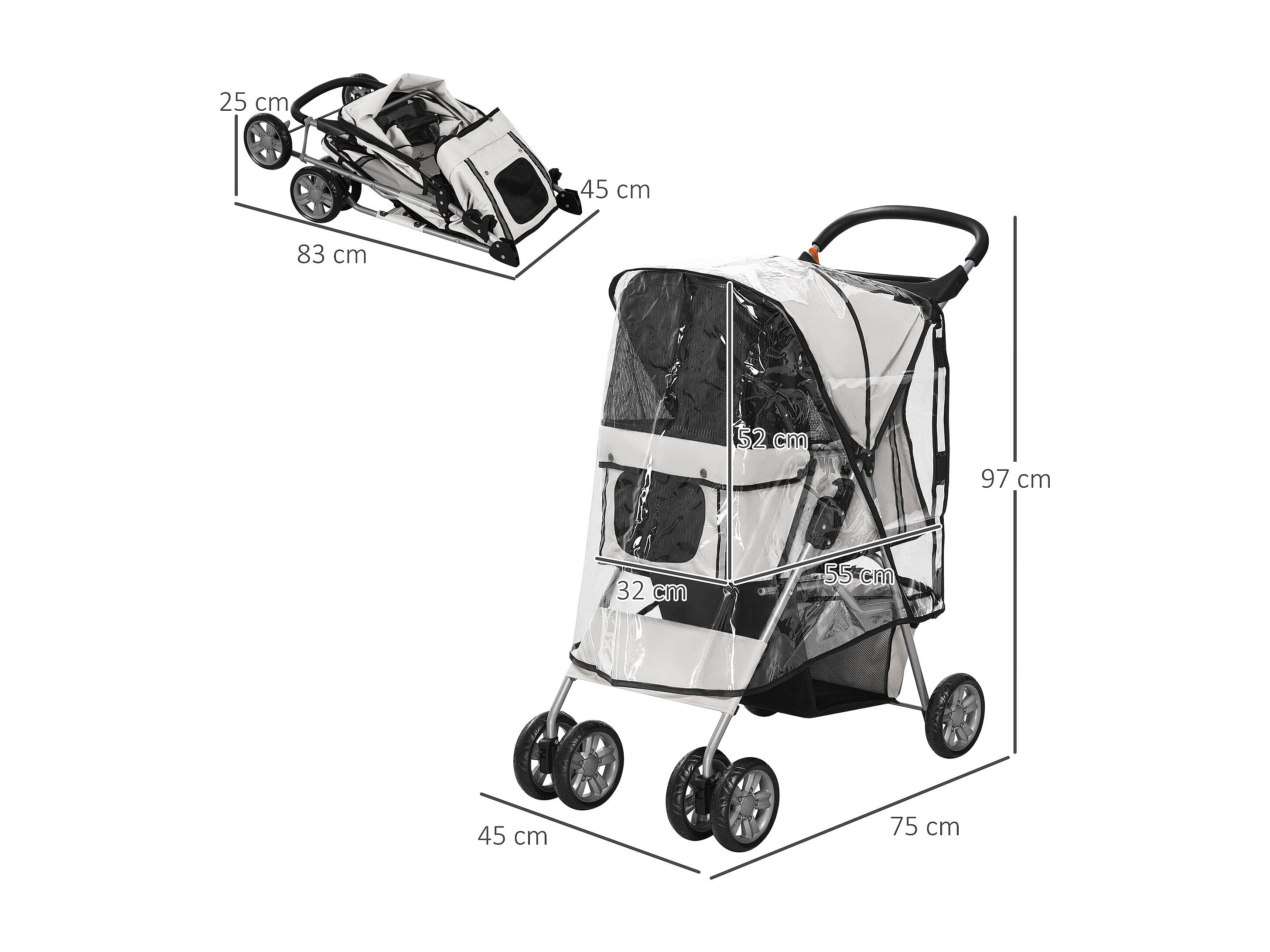 Poussette buggy pour chiens 75L x 46l x 94H cm pliable imperméable tissu 600D Oxford 4 roues gris
