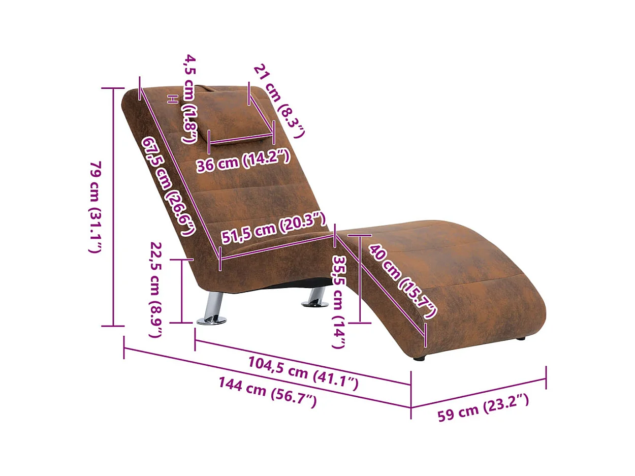 Wageningen Chaise longue avec oreiller marron Similicuir daim