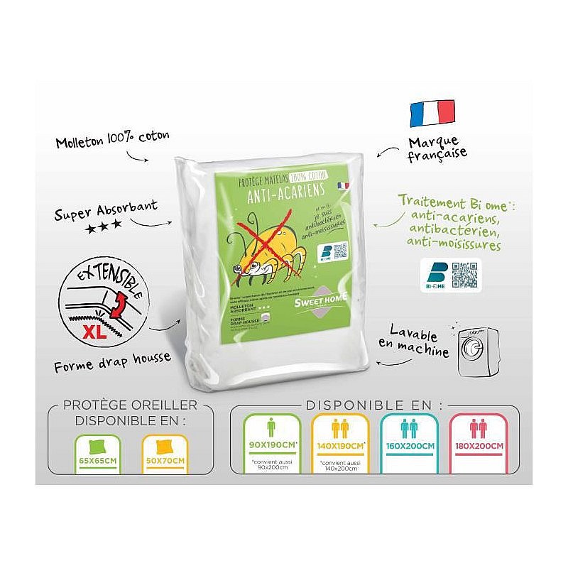 Protège-matelas 100% coton SWEETHOME - Anti-acariens - Doux et confortable - 140x190 /200 cm