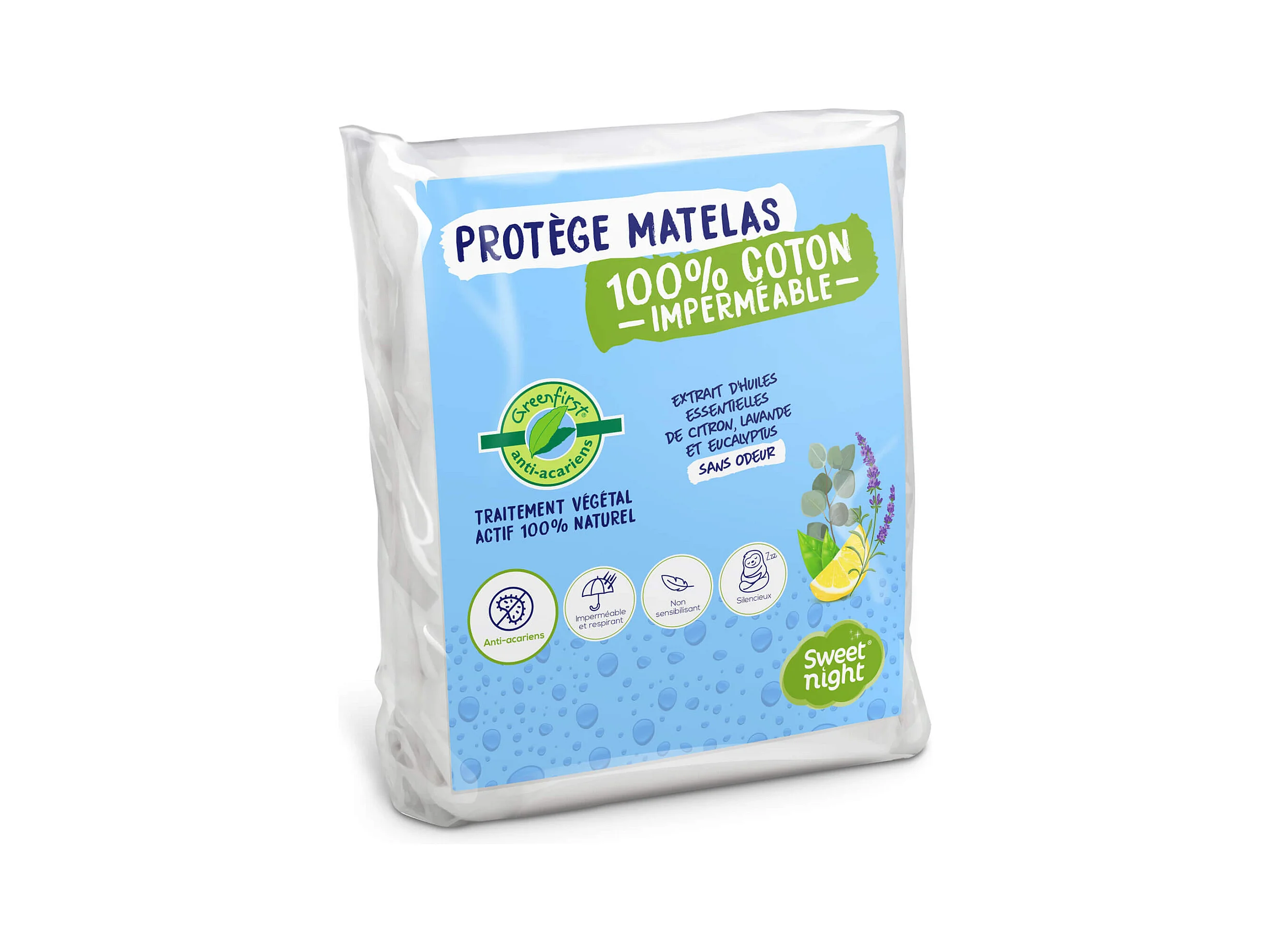 Protège matelas anti-acariens Greenfirst imperméable molleton 100% coton 180x200