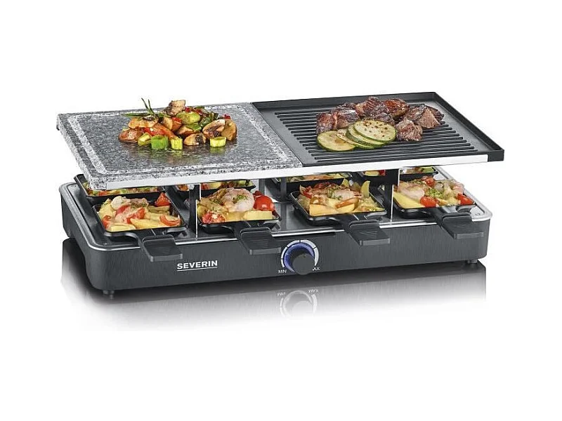 Appareil à raclette et pierre à cuire 8 personnes - Puissance 900W - Gris