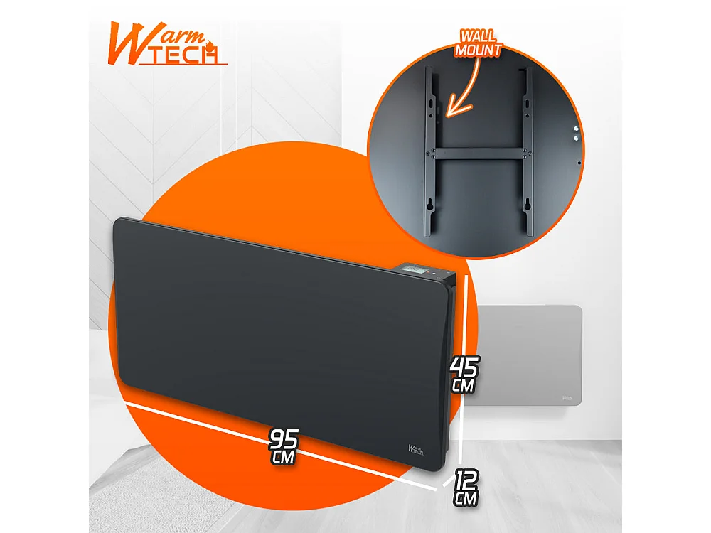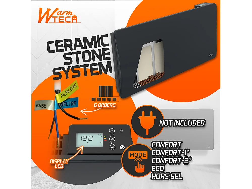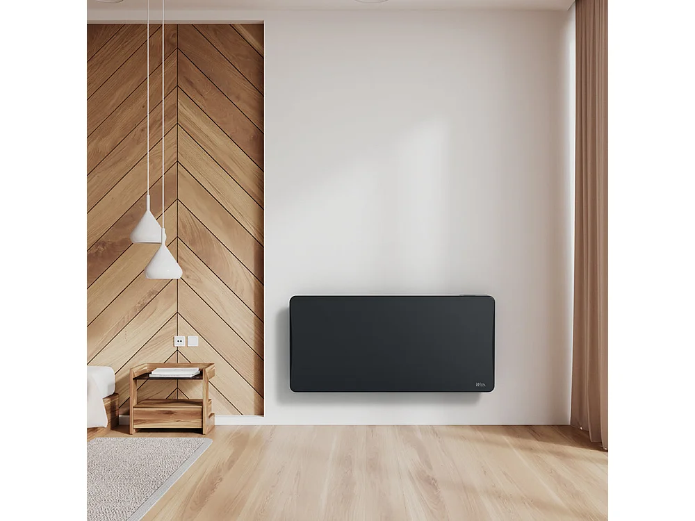 Radiateur à inertie sèche en pierre céramique 2000 W, mural, noir - Thermostat LCD