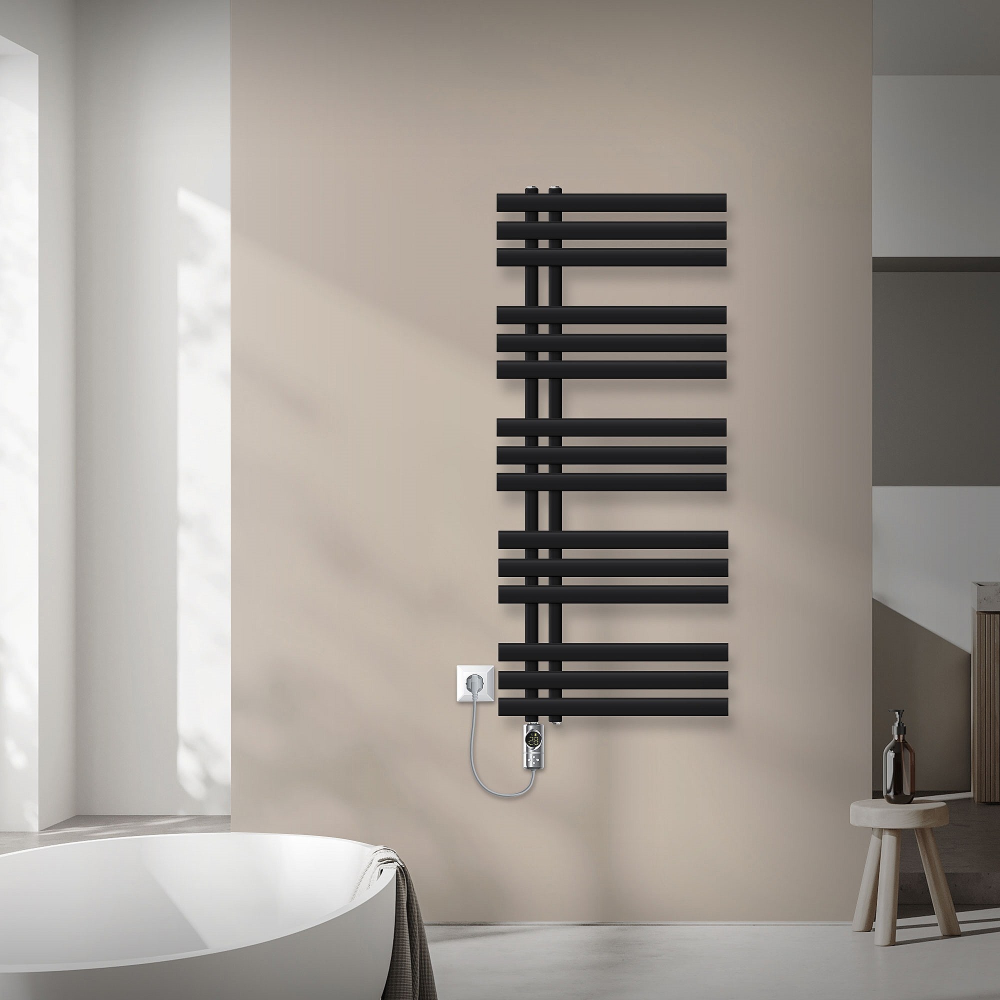 Radiateur de salle de bain acier noir mat 50x120cm avec élément chauffant 1200W