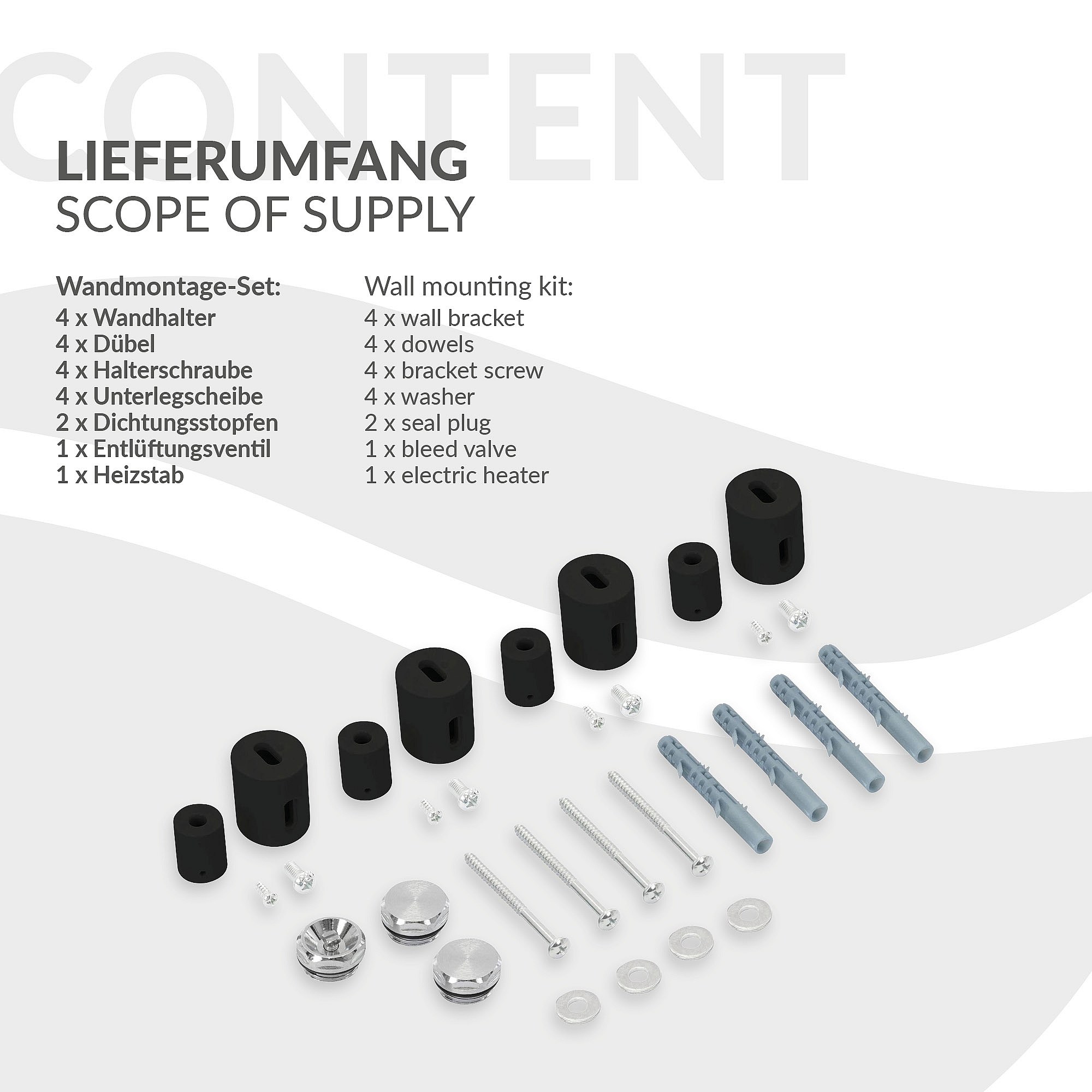 Radiateur de salle de bain acier noir mat 60x140 cm avec élément chauffant 900W