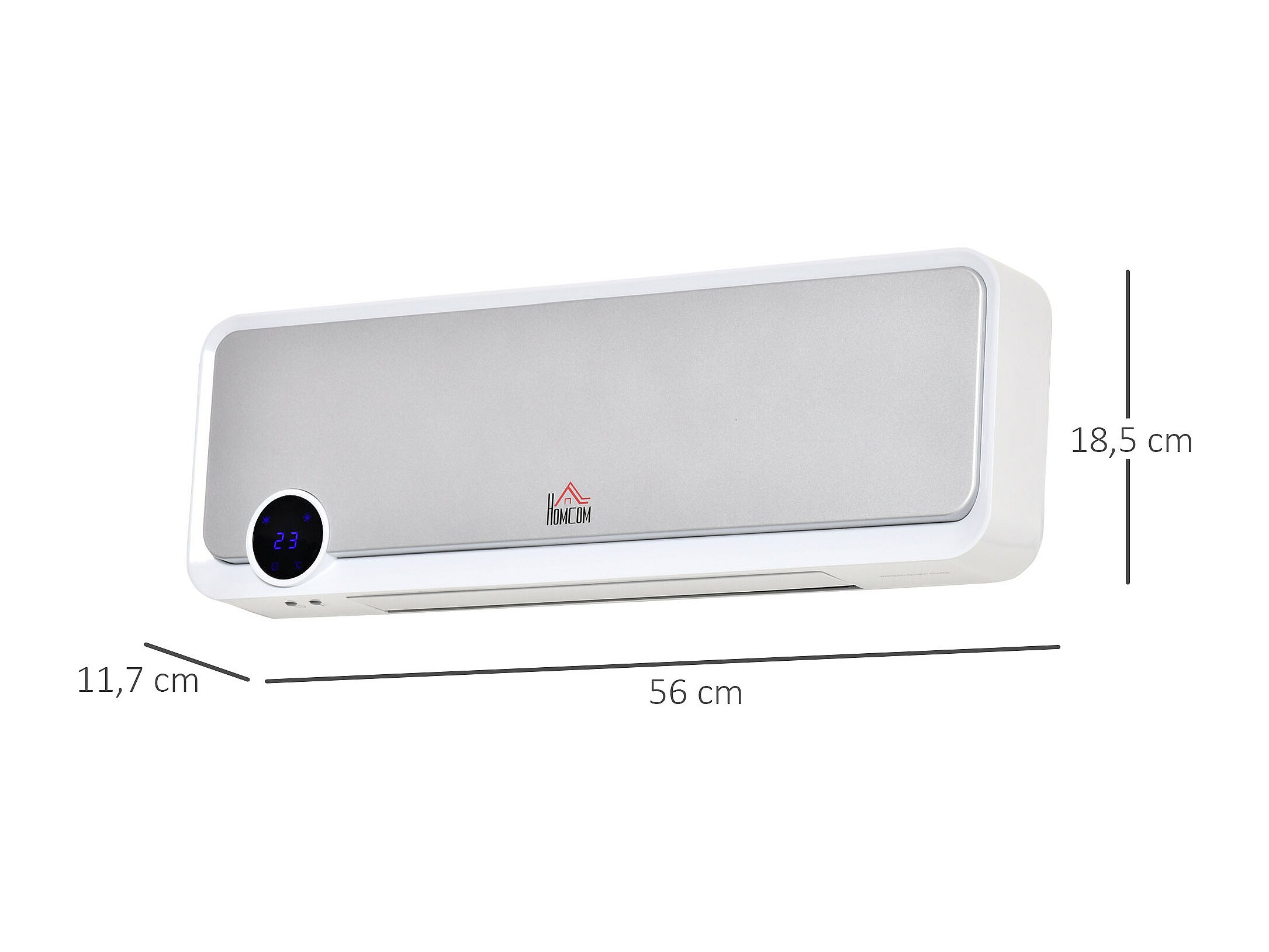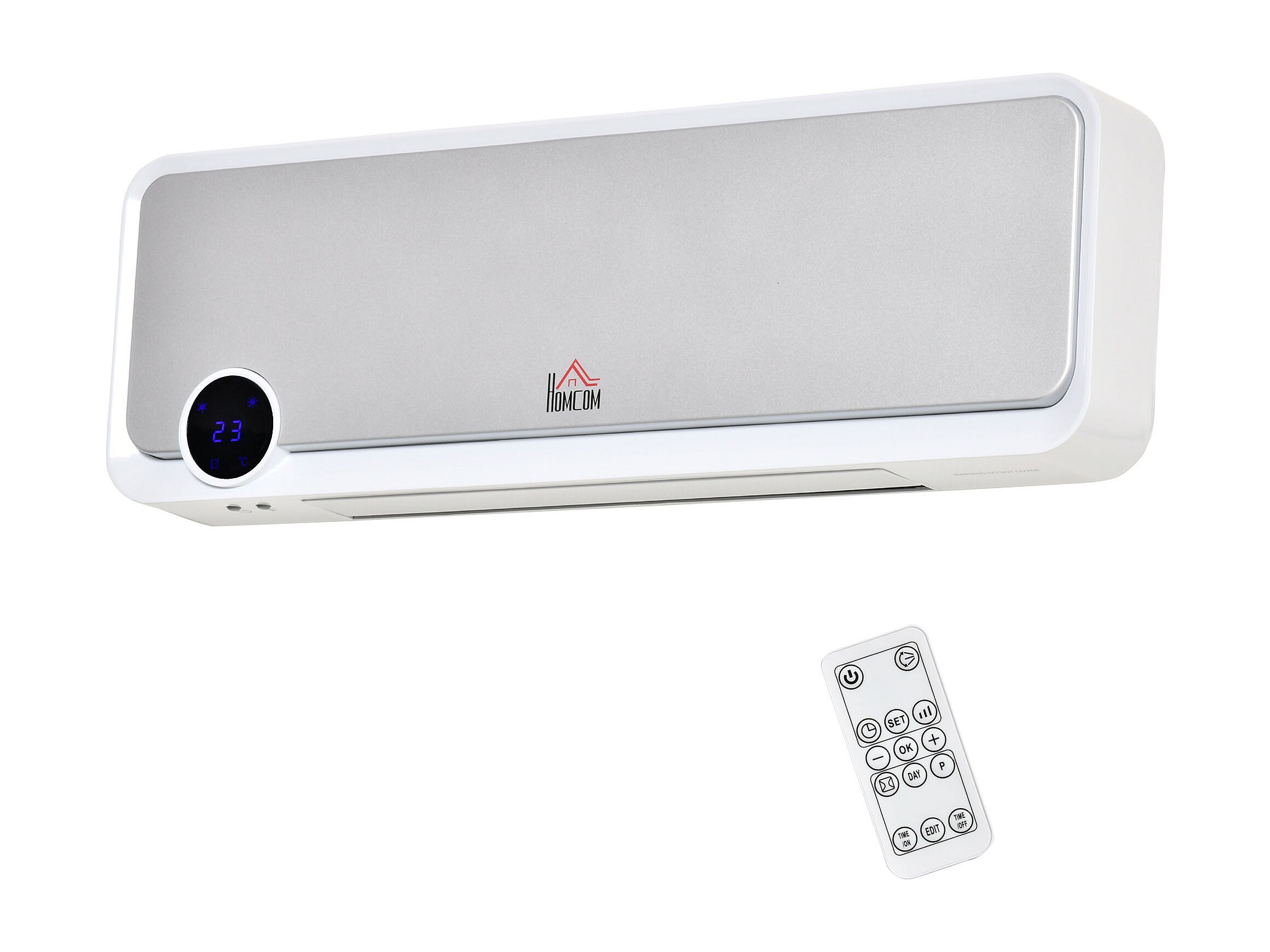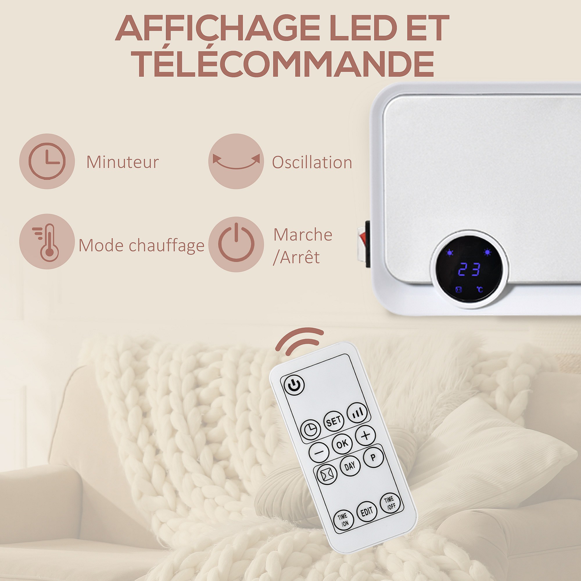 Radiateur mural soufflant oscillant 2000 W - chauffage céramique PTC - 3 niveaux de puissance - télécommande incluse blanc argenté