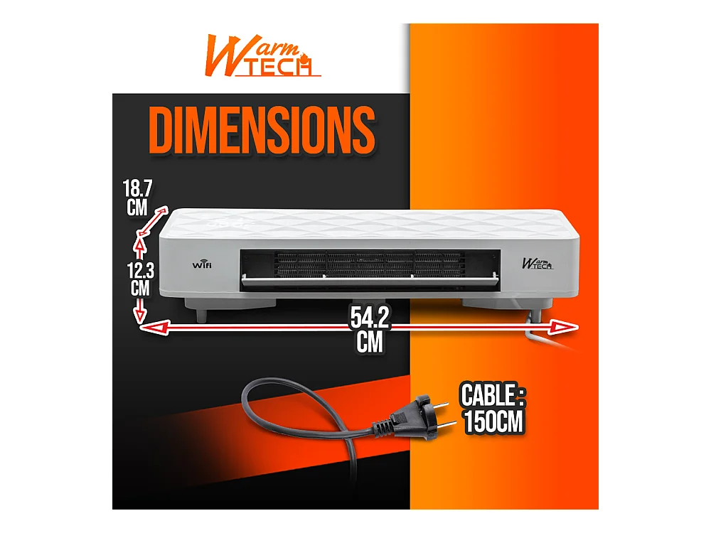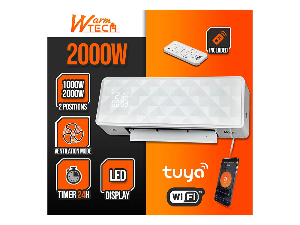 Radiateur soufflant céramique mural 2000W avec télécommande et connexion Wifi - Warm tech