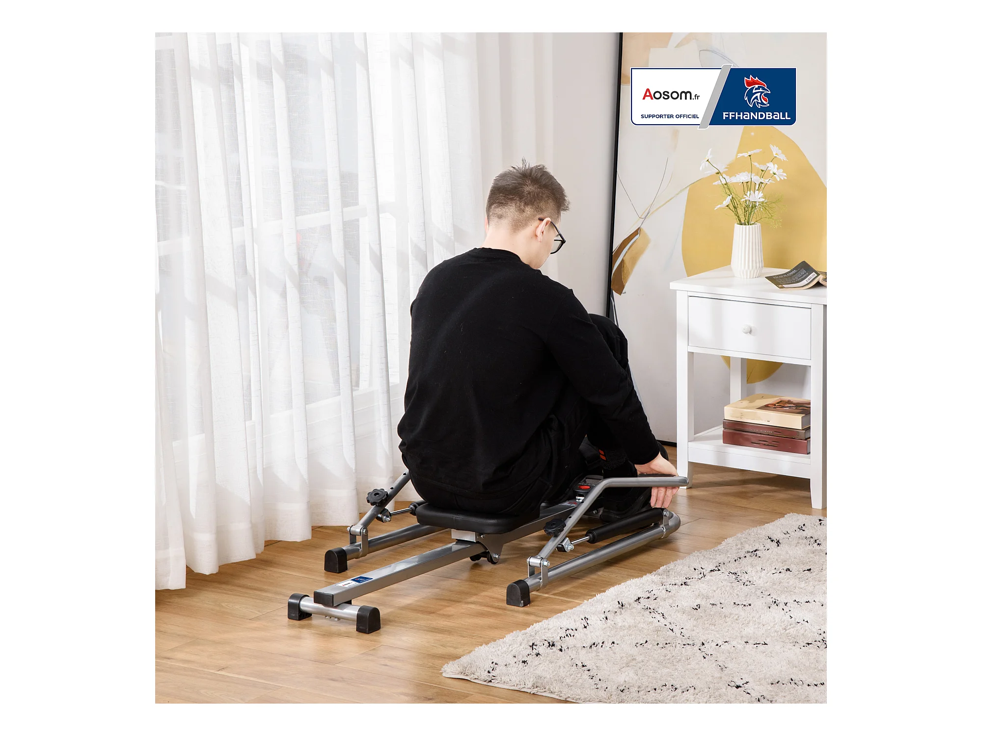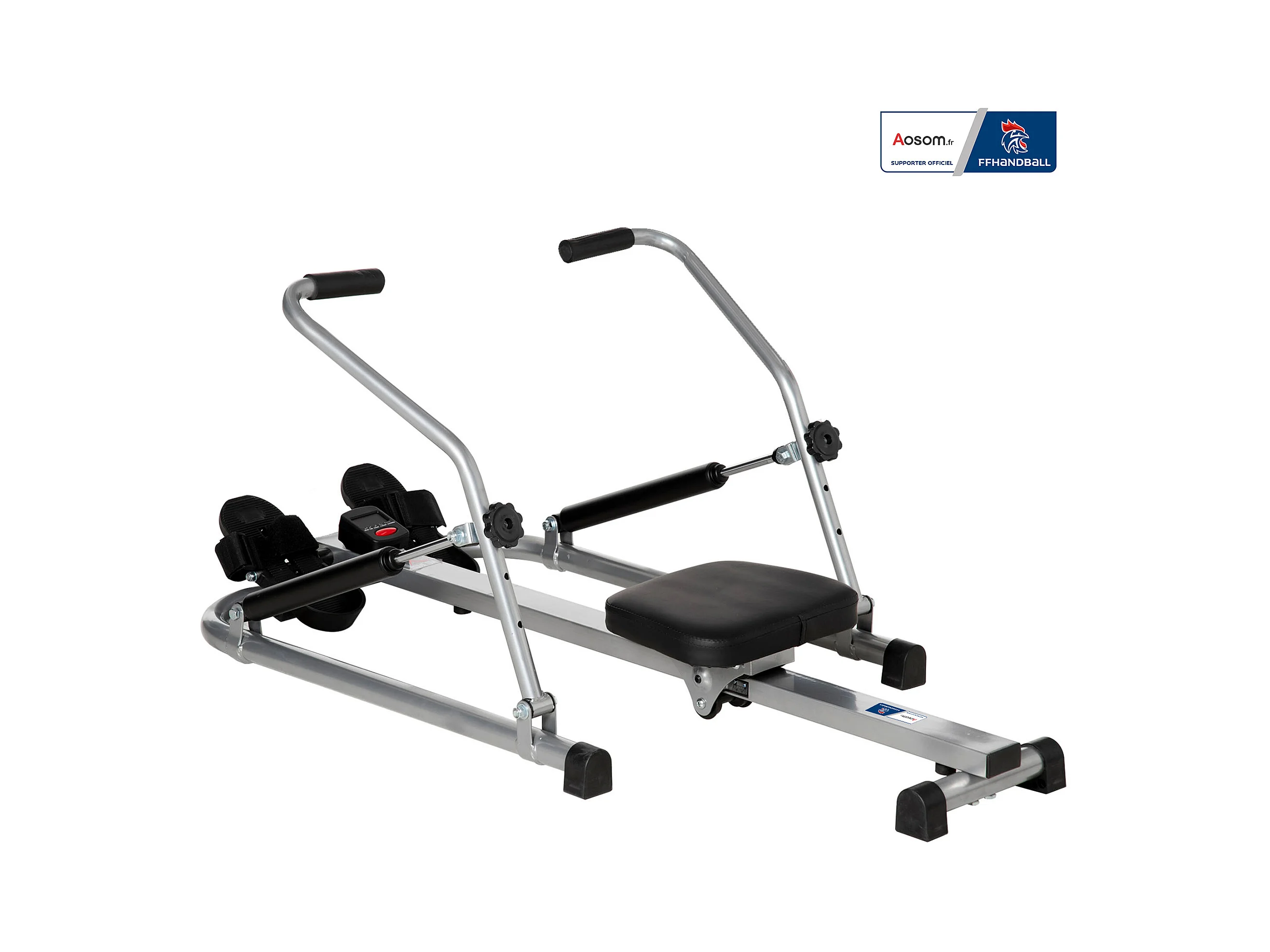 Rameur d'appartement pliable - collaboration Aosom.fr x FFHandball - résistance 3 niv. écran LCD multifonction - acier ABS noir gris