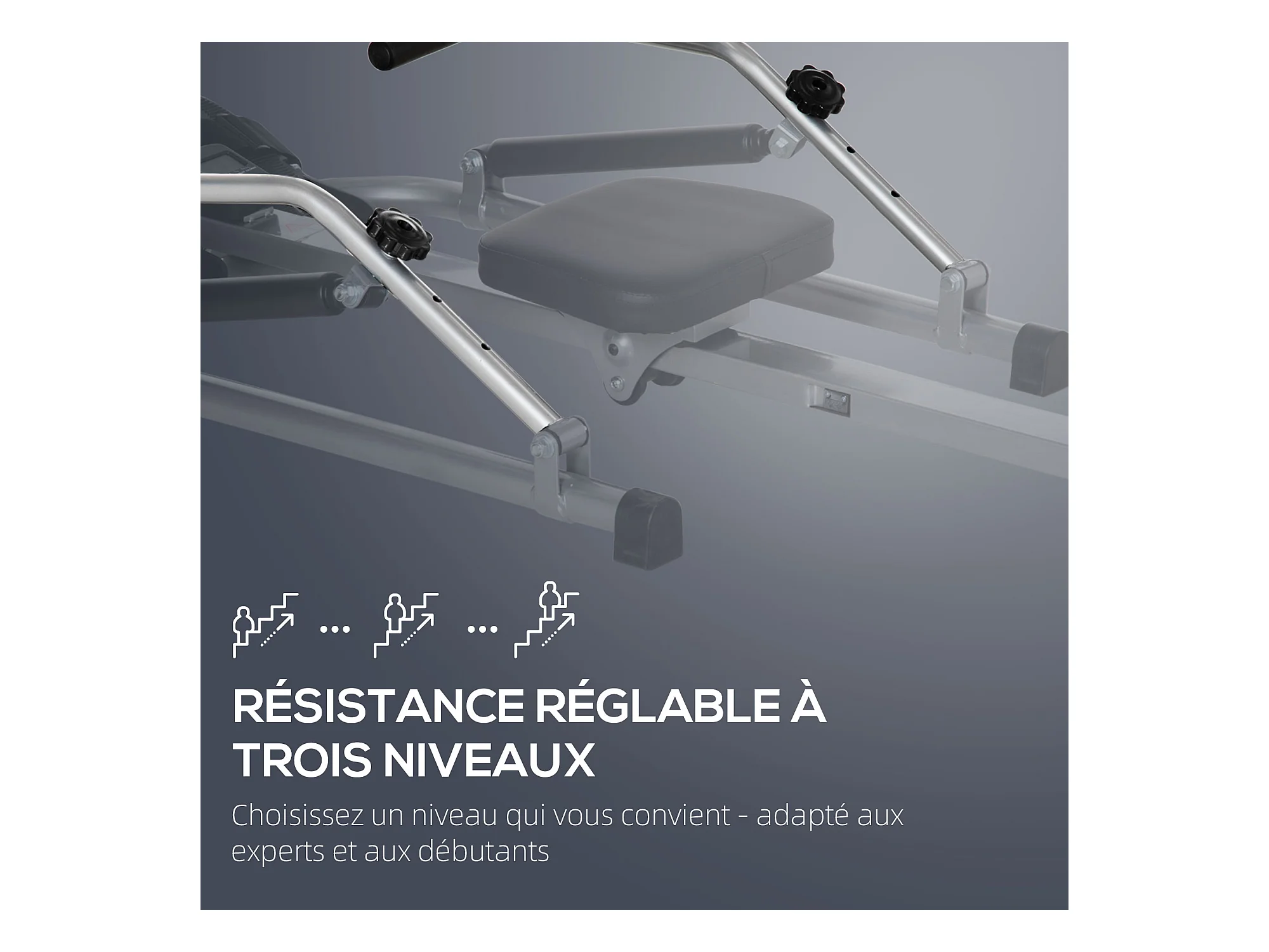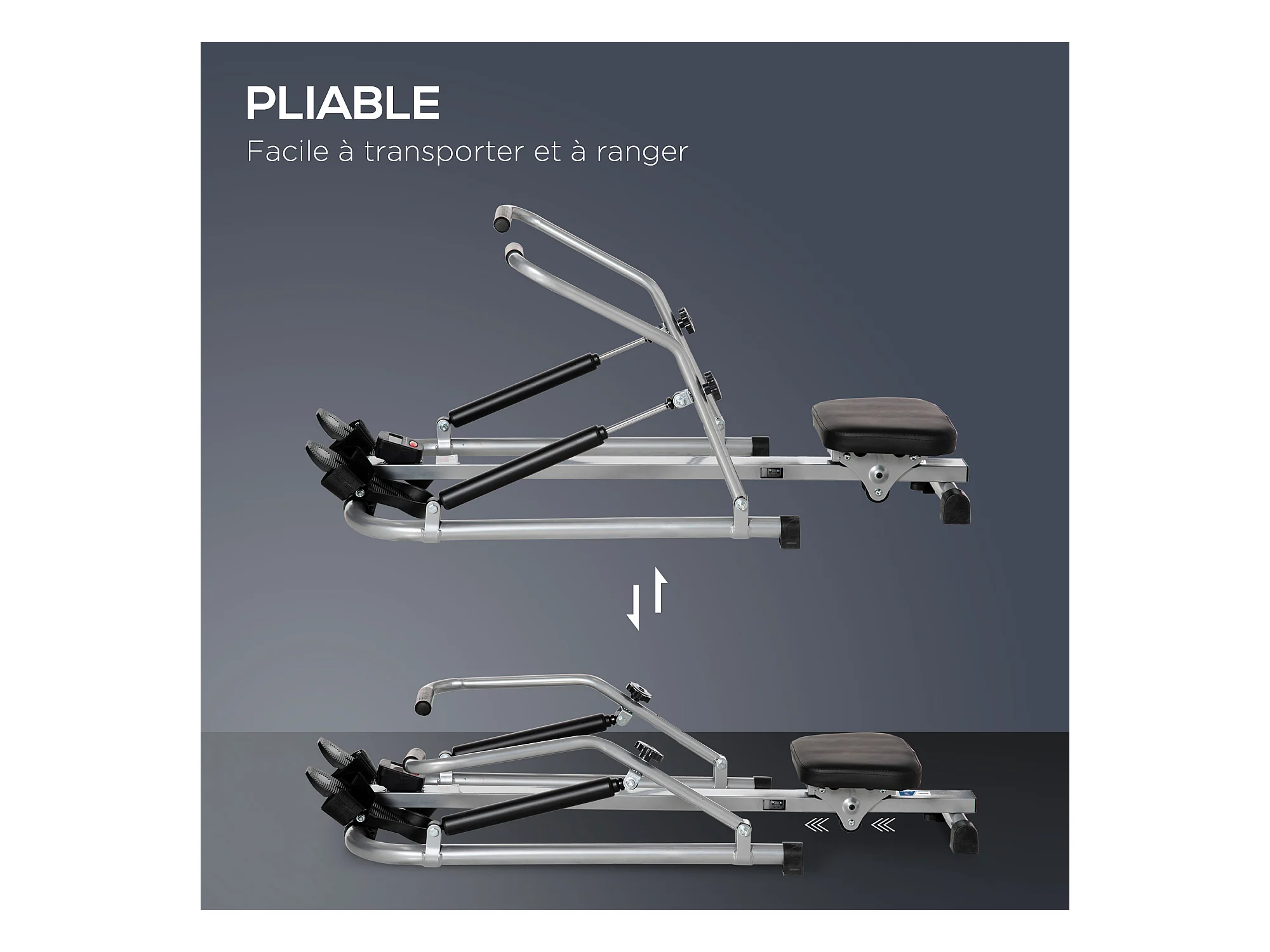 Rameur d'appartement pliable - 3 niveaux de résistance écran LCD multifonction - acier ABS noir gris