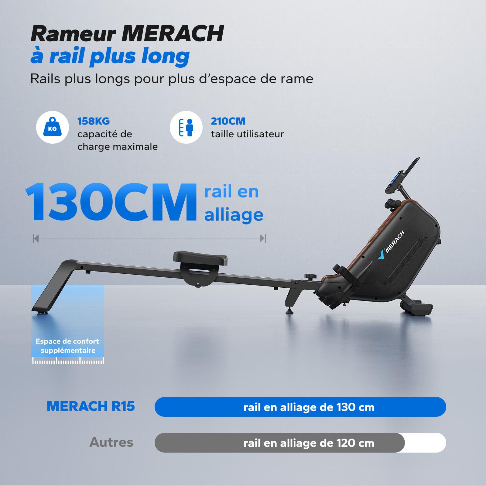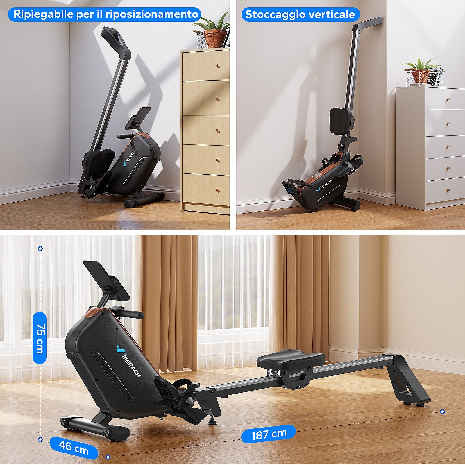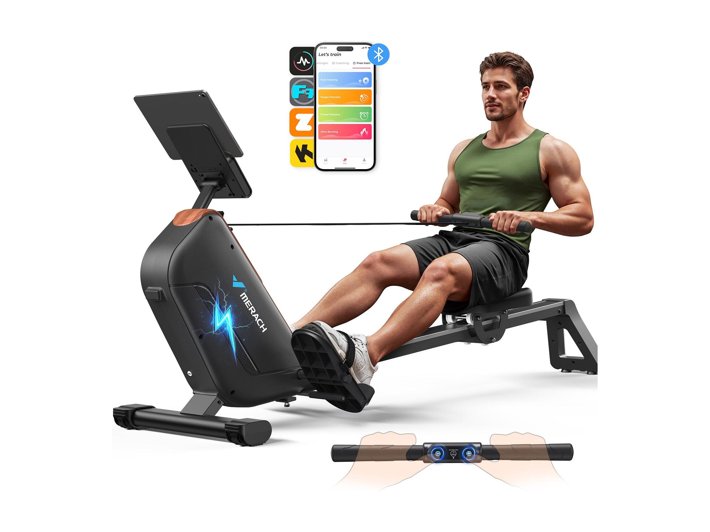 Rameur électromagnétique MERACH, 16 Niveaux de Résistance, Auto-alimenté, Écran LCD, Connecté APP, Pliable, Charge Max 158 kg