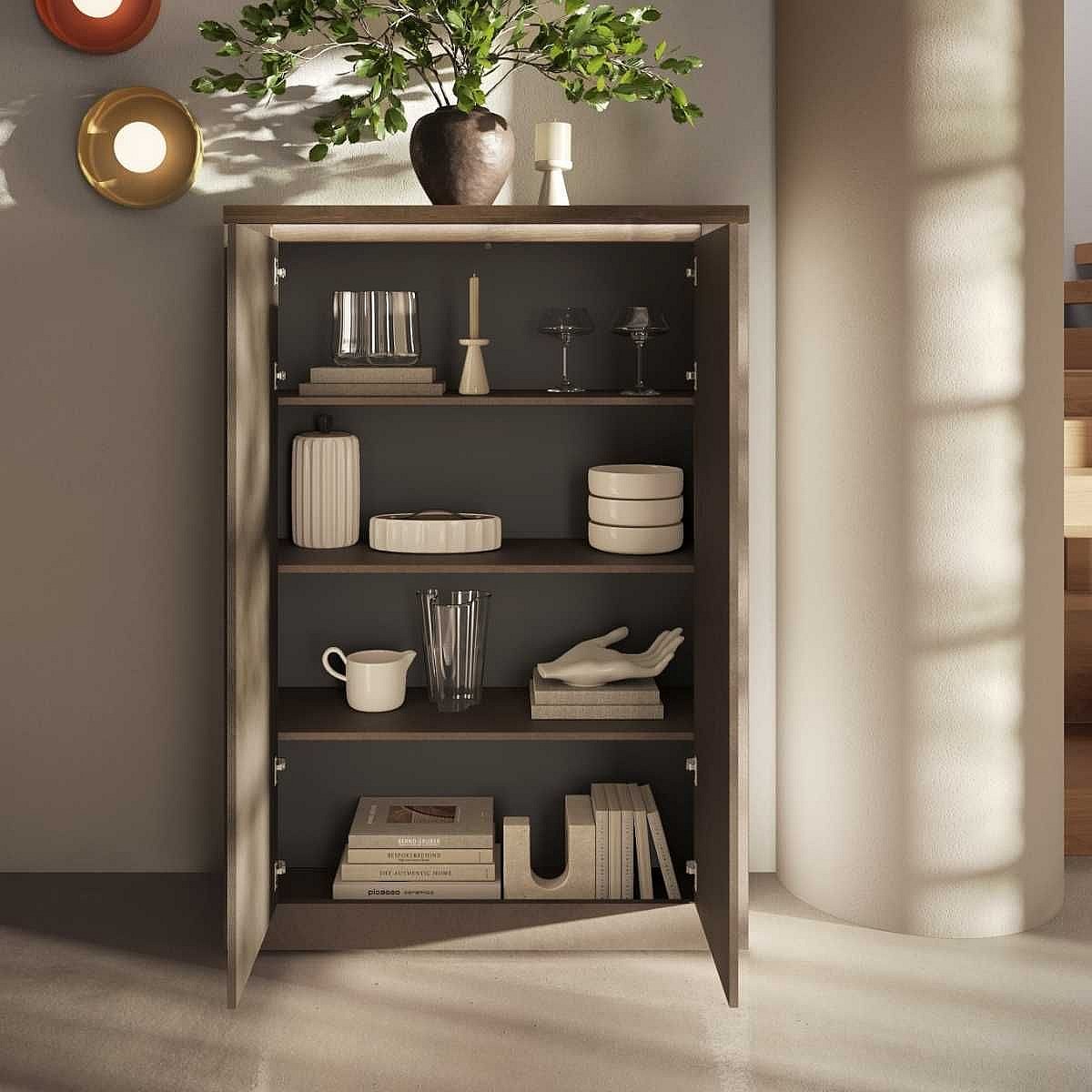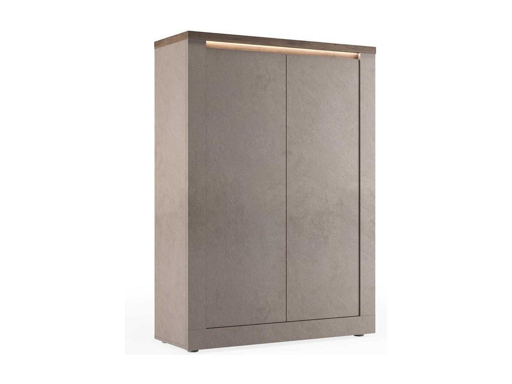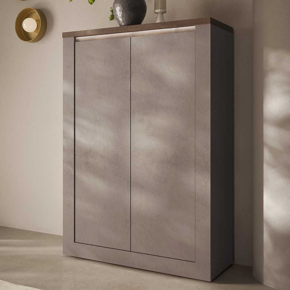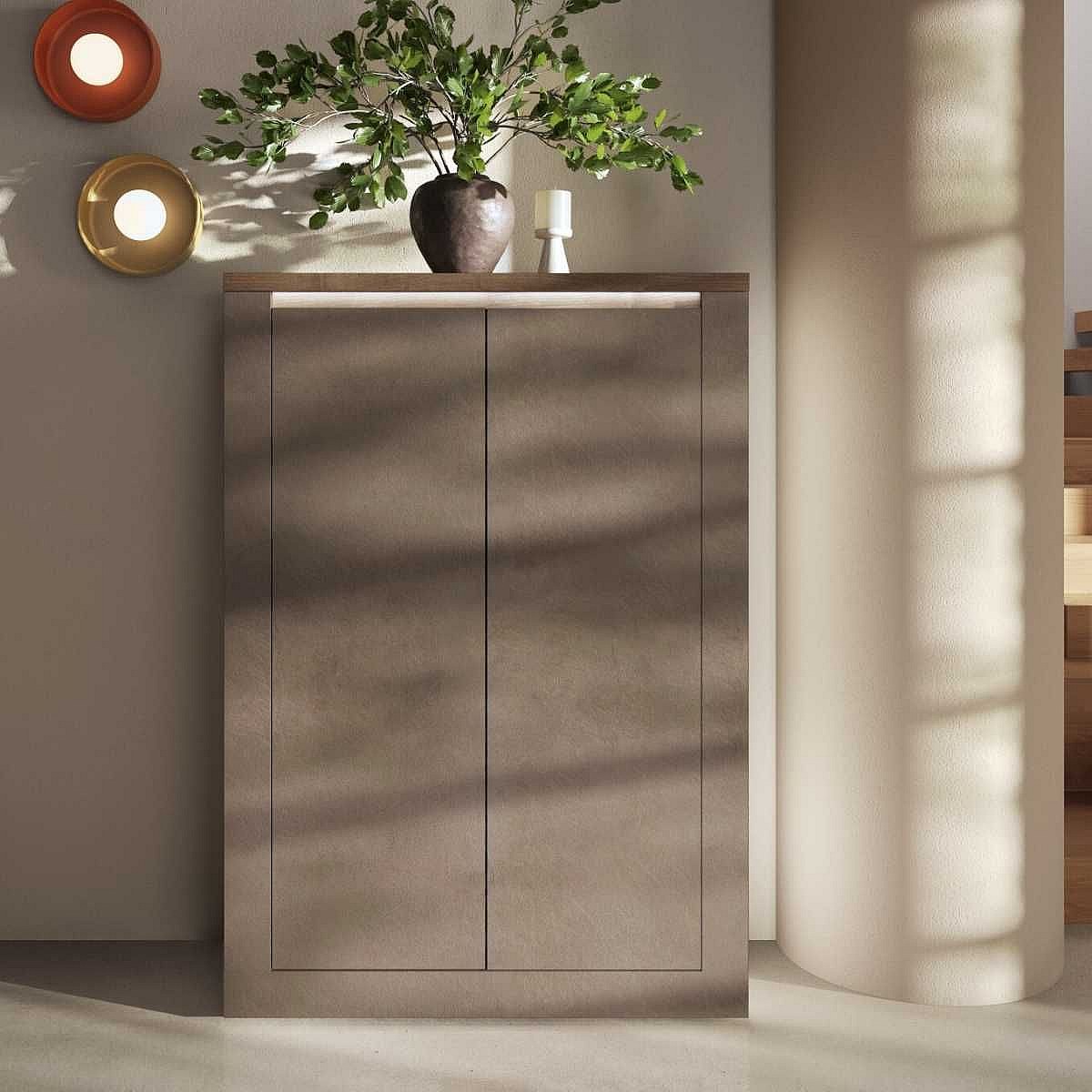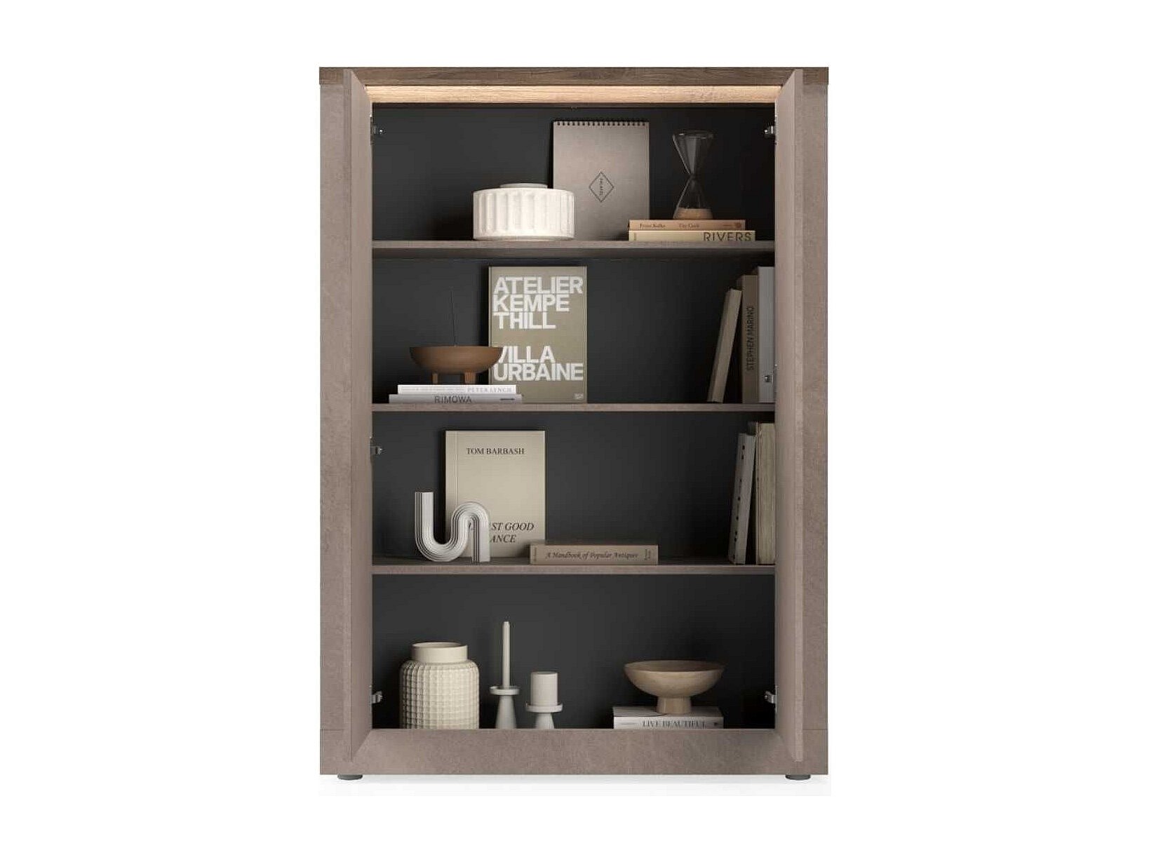 Rangement 2 portes aspect minéral bronze plateau bois Mercure avec LED - ISALIA BRONZE