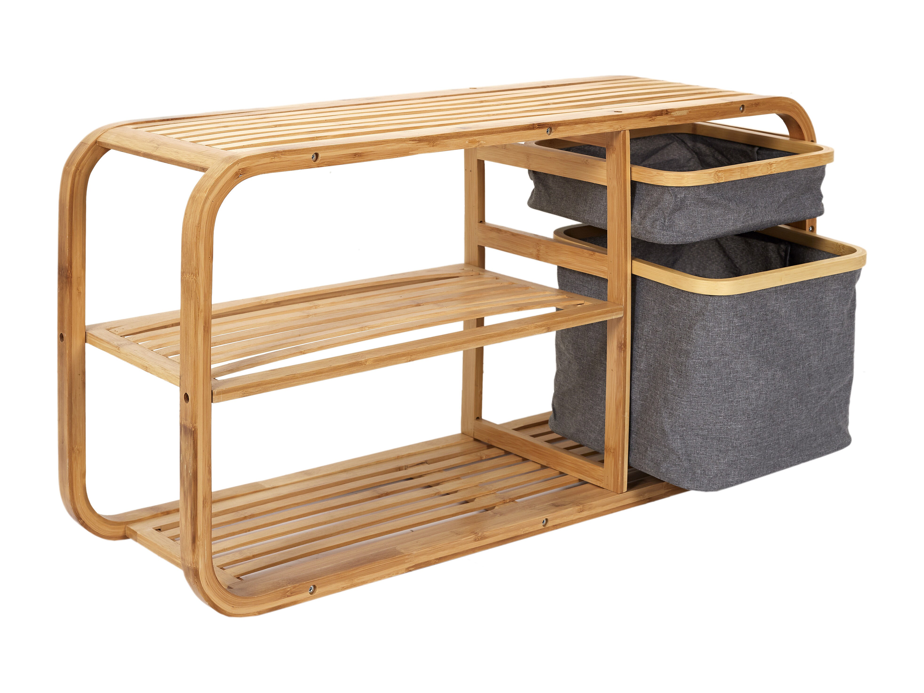 Panier à Linge 3 Compartiments sur Roulettes Imitation Jonc Naturel
