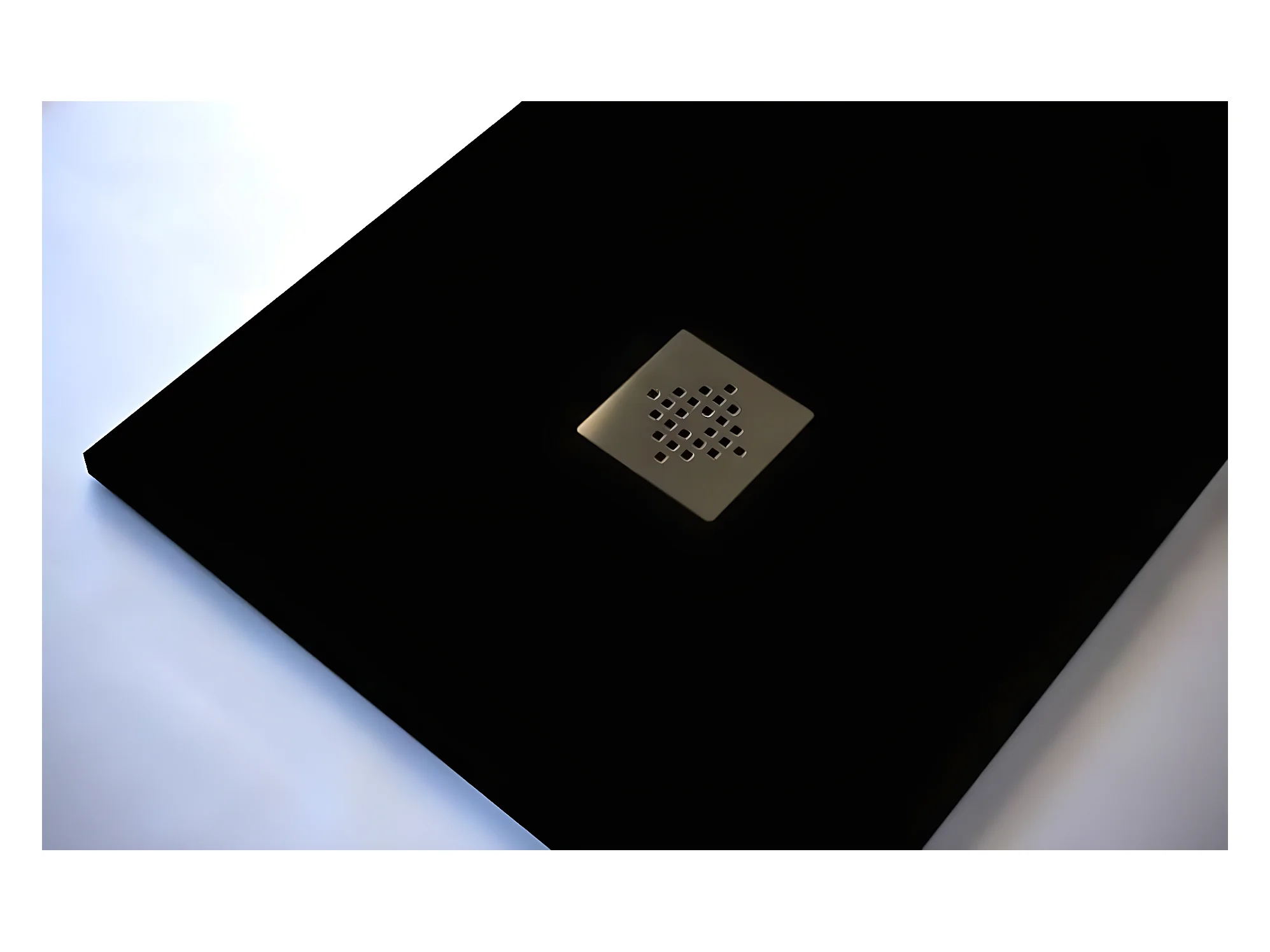Receveur de douche 70 x 190 cm extra plat PURE en résine surface ardoisée noir Grille inox
