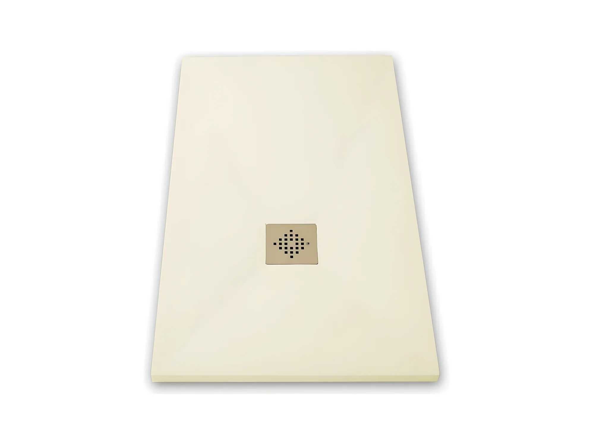 Receveur de douche 90 x 160 cm extra plat PURE en résine surface ardoisée beige Grille inox