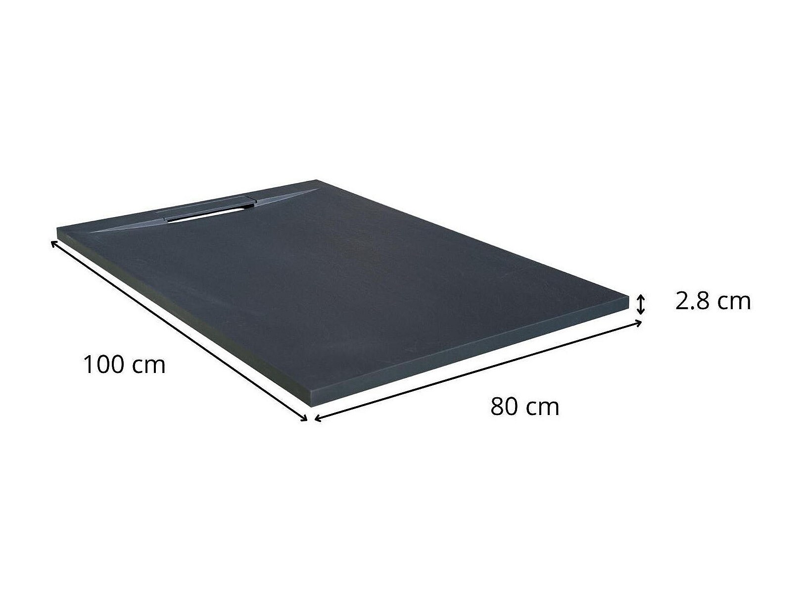 Receveur de douche aspect pierre extra-plat gris anthracite - Bonde incluse