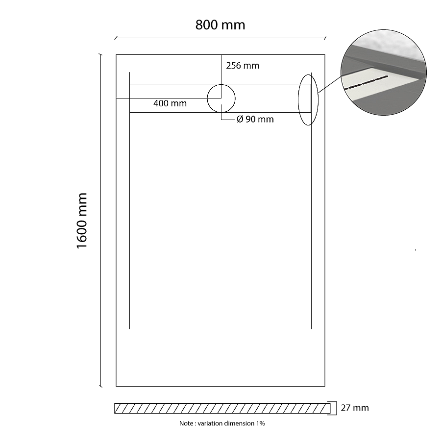 Receveur de douche en résine extra plat à poser 80x160cm - anthracite - Arhus