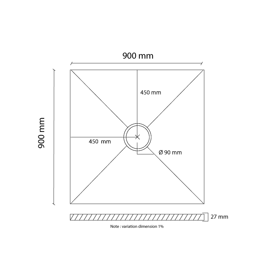 Receveur de douche en résine extra plat à poser 90x90cm - beige - RONDA