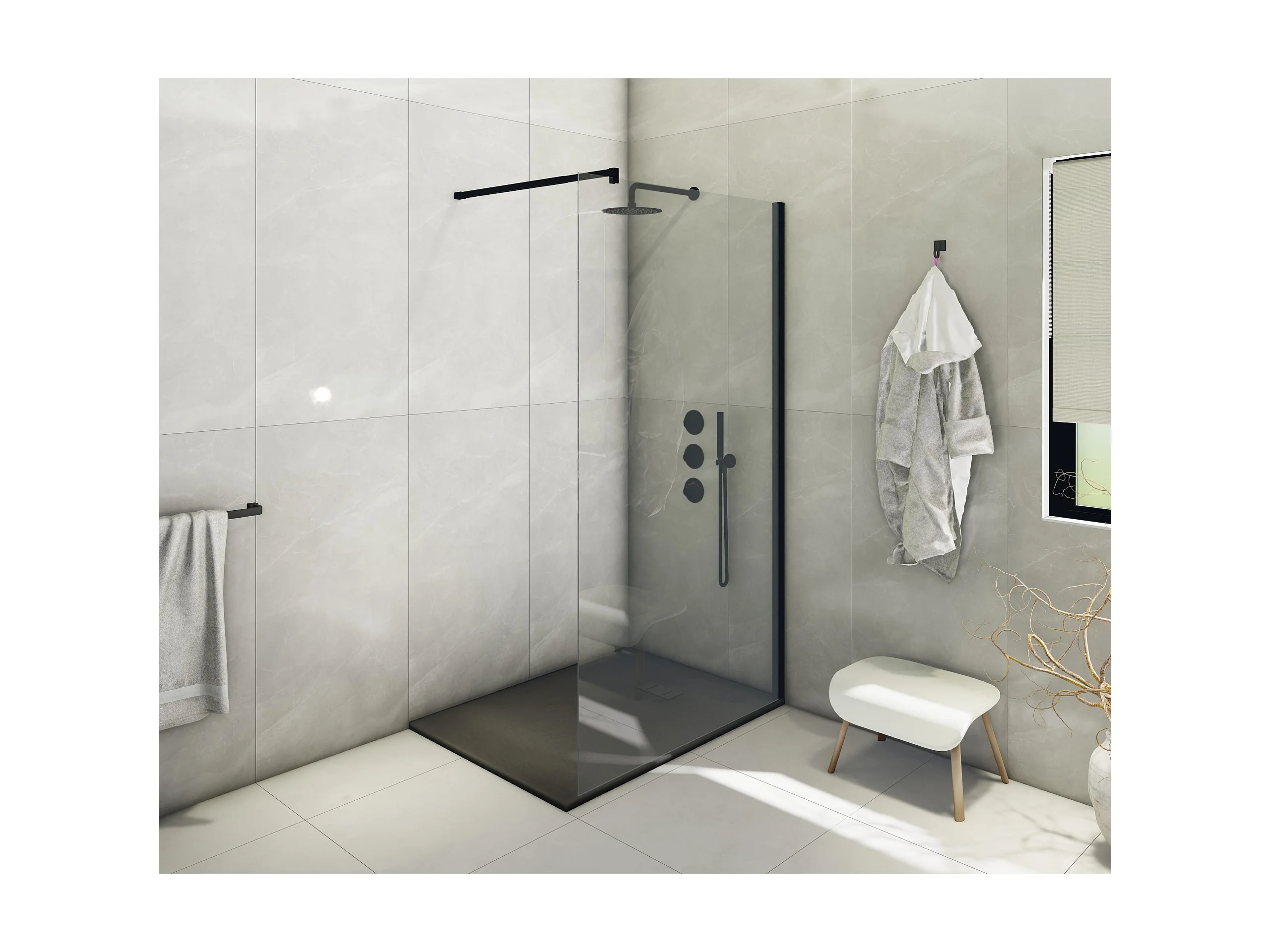 Receveur de douche SMC en fibre de verre effet pierre avec bonde inclus H. 2,6 cm 80 x 160 Noir