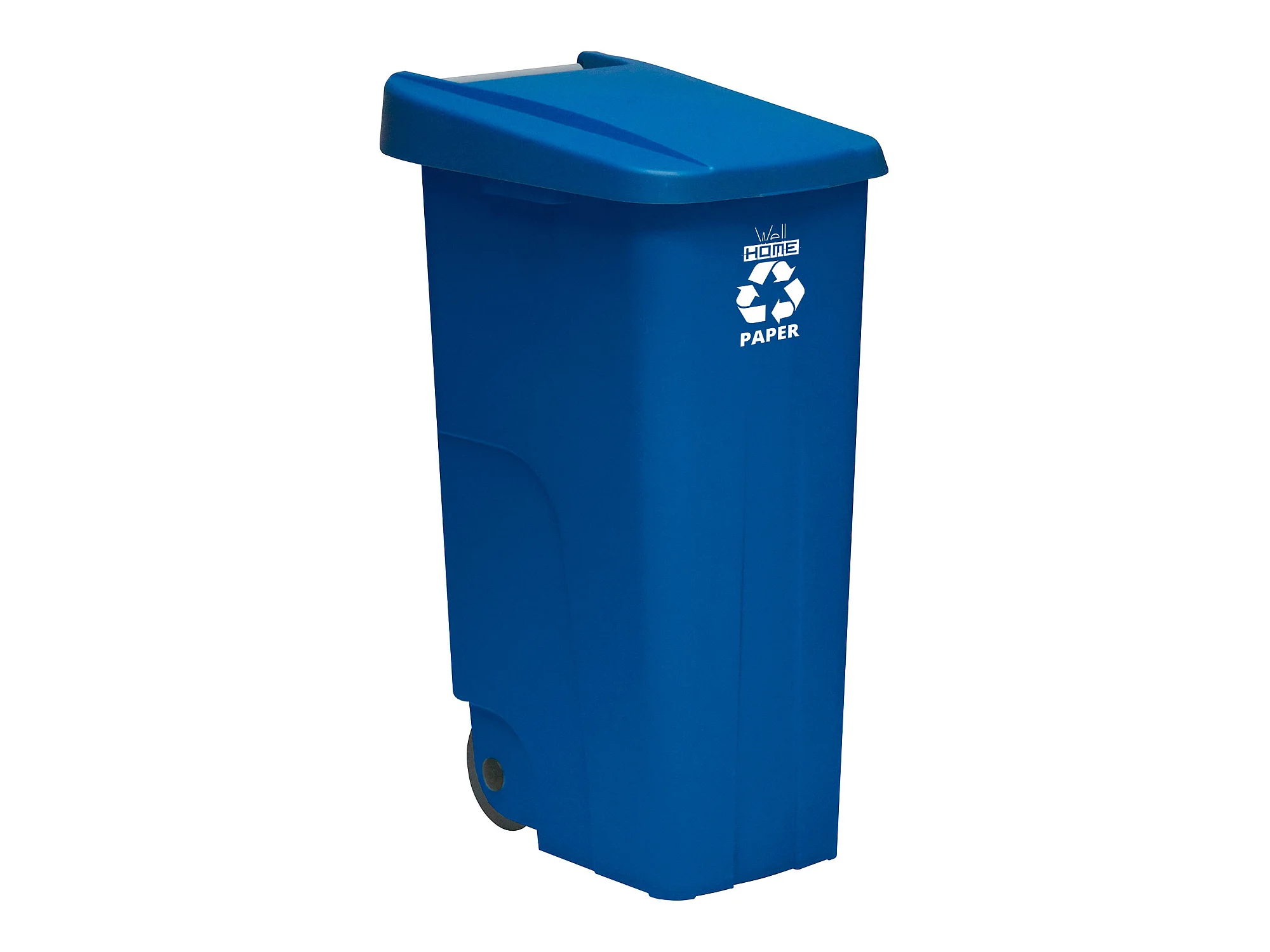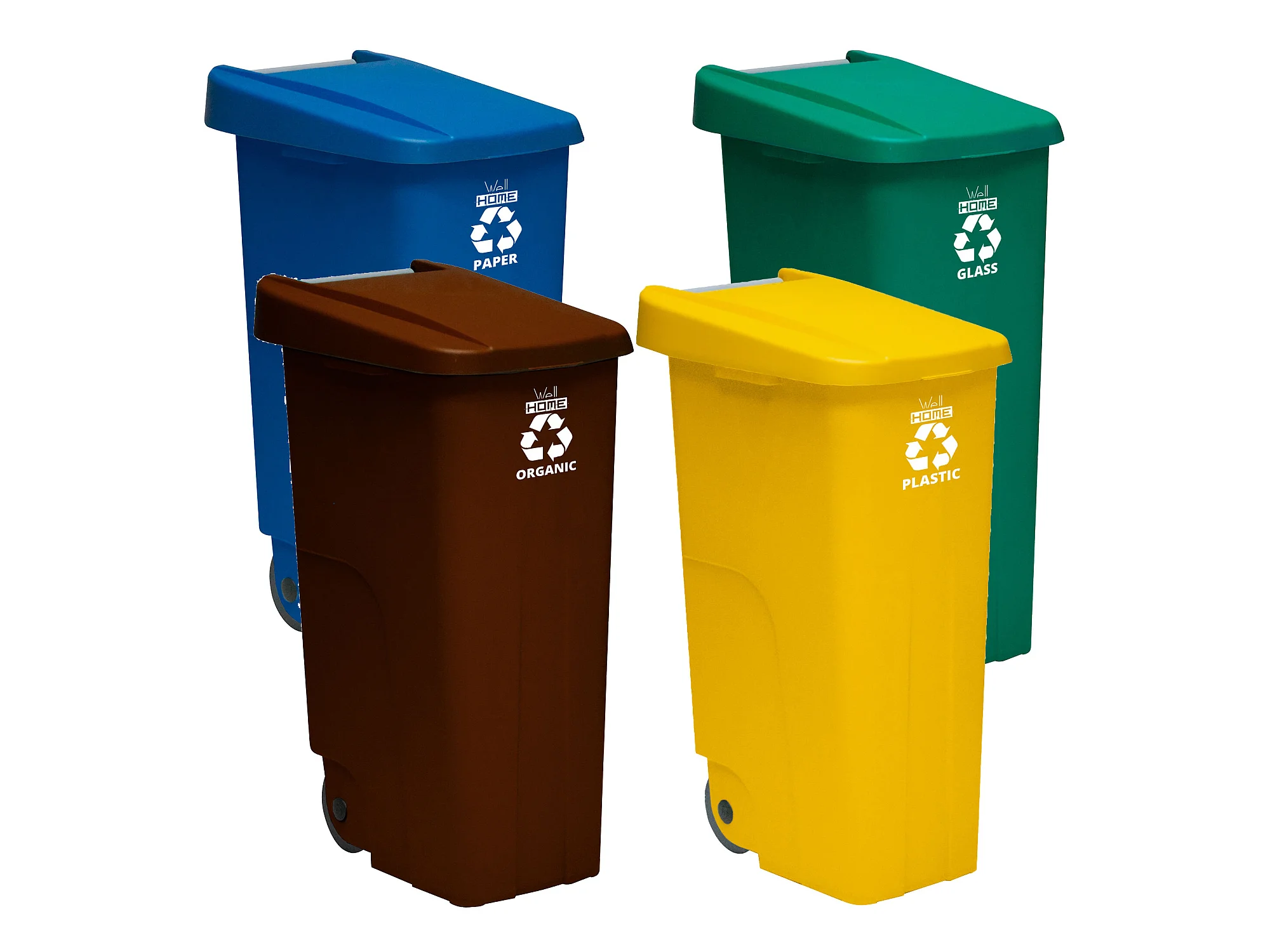 Récipient de recyclage 110 litres fermé chacun: 440 litres au total, dans 4 conteneurs, en bleu / vert / jaune / jaune, L57 P 42 H88