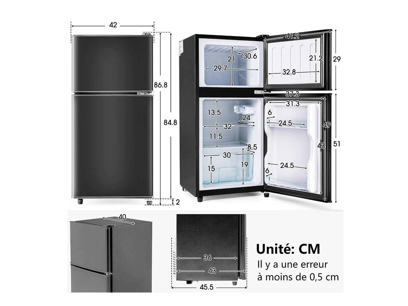 Réfrigérateur 22L+38L avec LED, pieds réglable, 172 kWh/an, -27 °C à 13 °C, 7 Niveau Température, énergétique E, 42x45.5x86.8cm