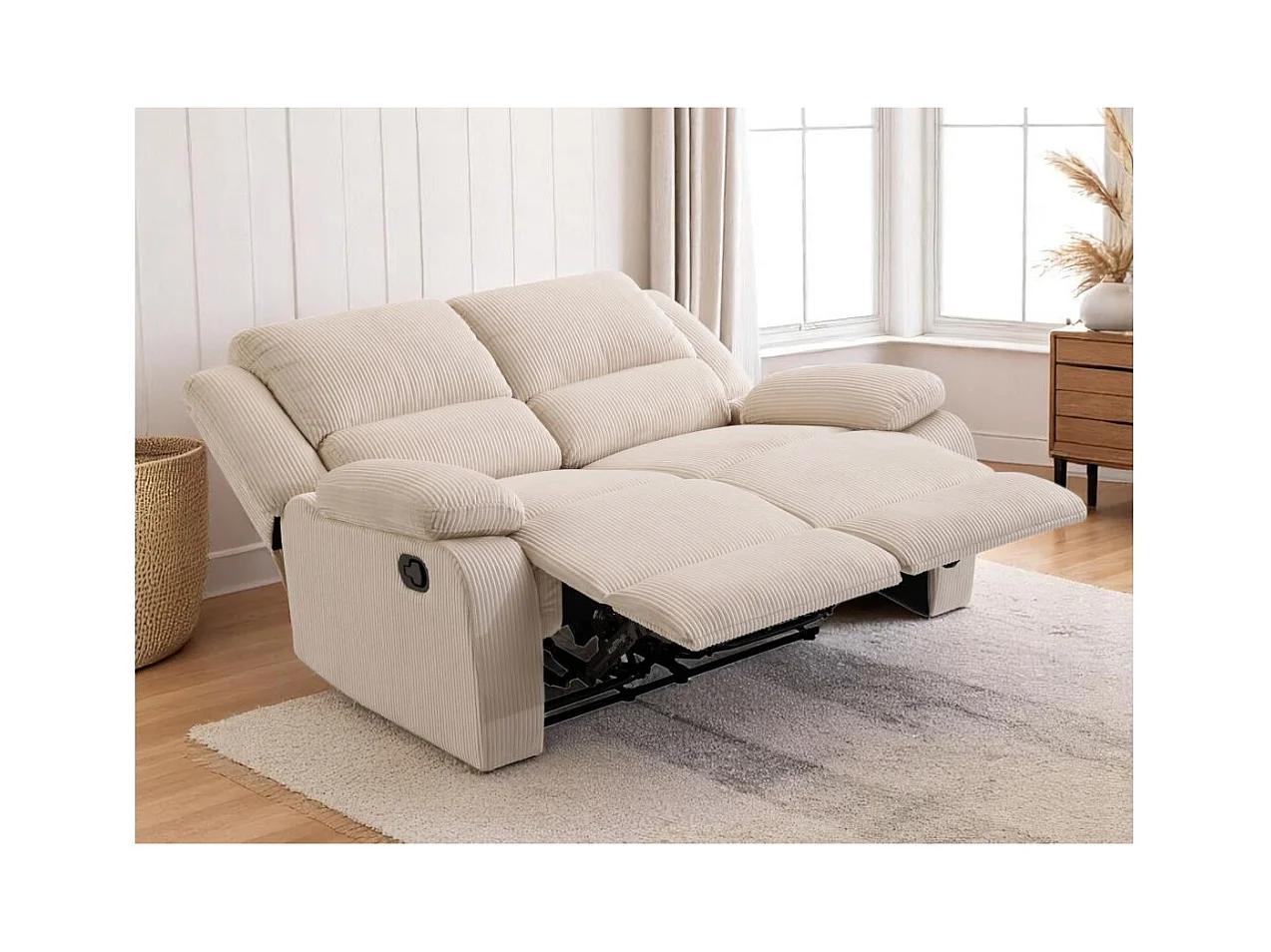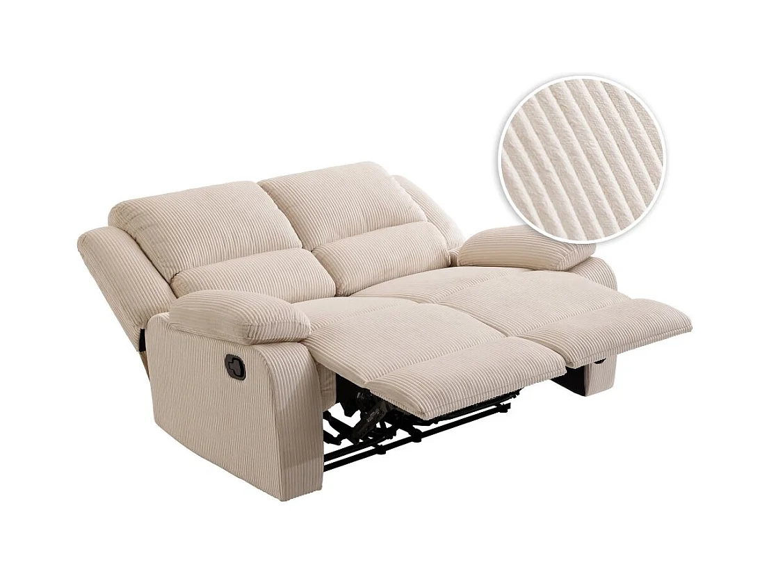 RELAXXO - Canapé de relaxation manuel 2 places LEO en velours côtelé - beige