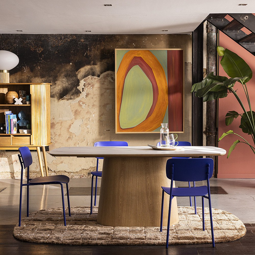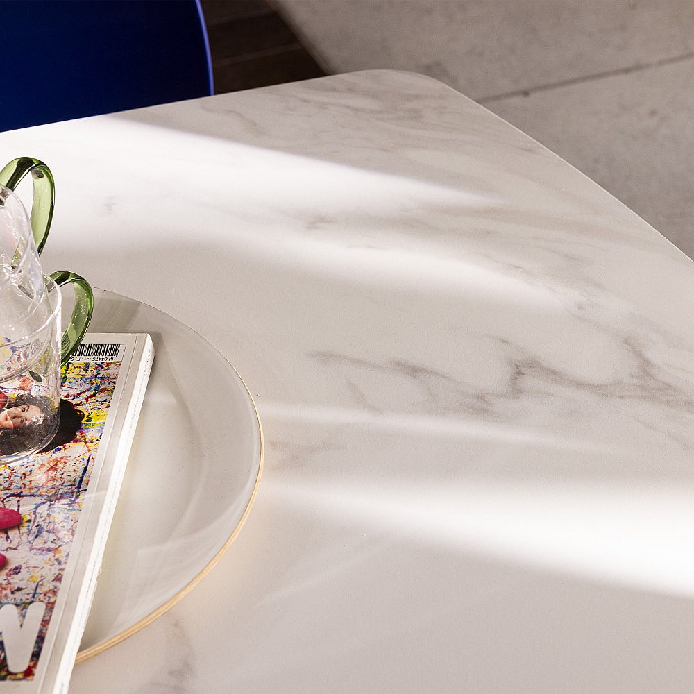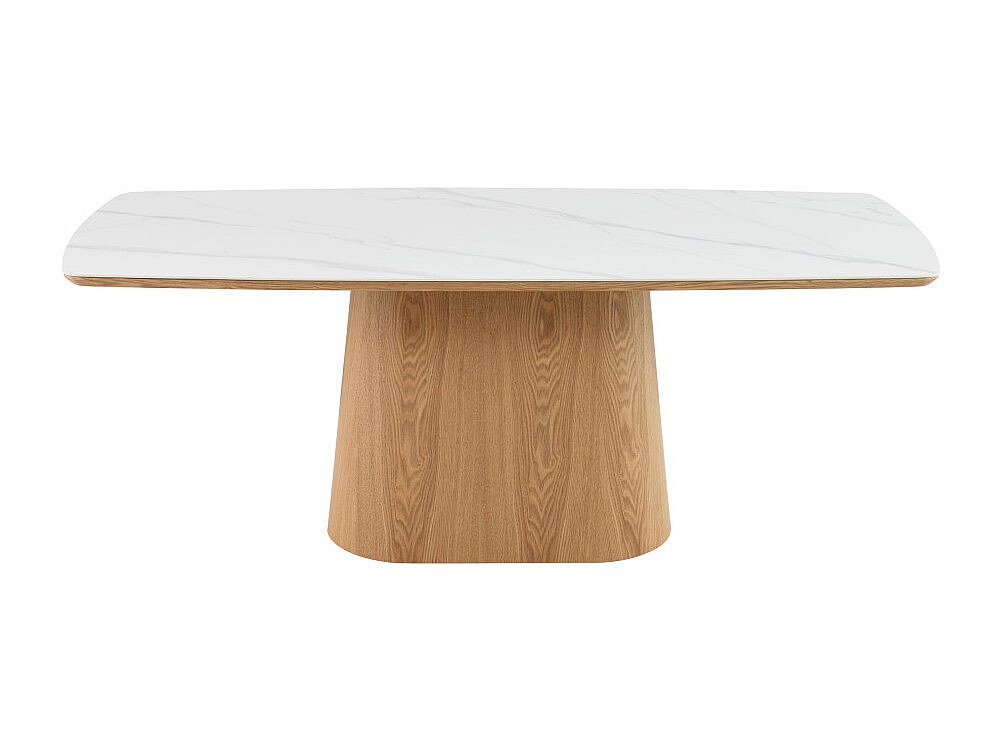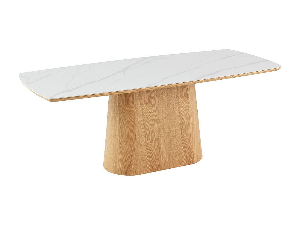 Reno - Table à manger 8 personnes effet marbre et bois - Bois clair