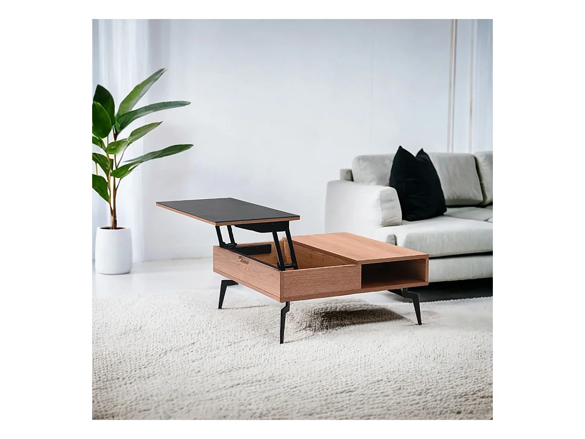 RENO - Table Basse Relevable Effet Chêne et Céramique