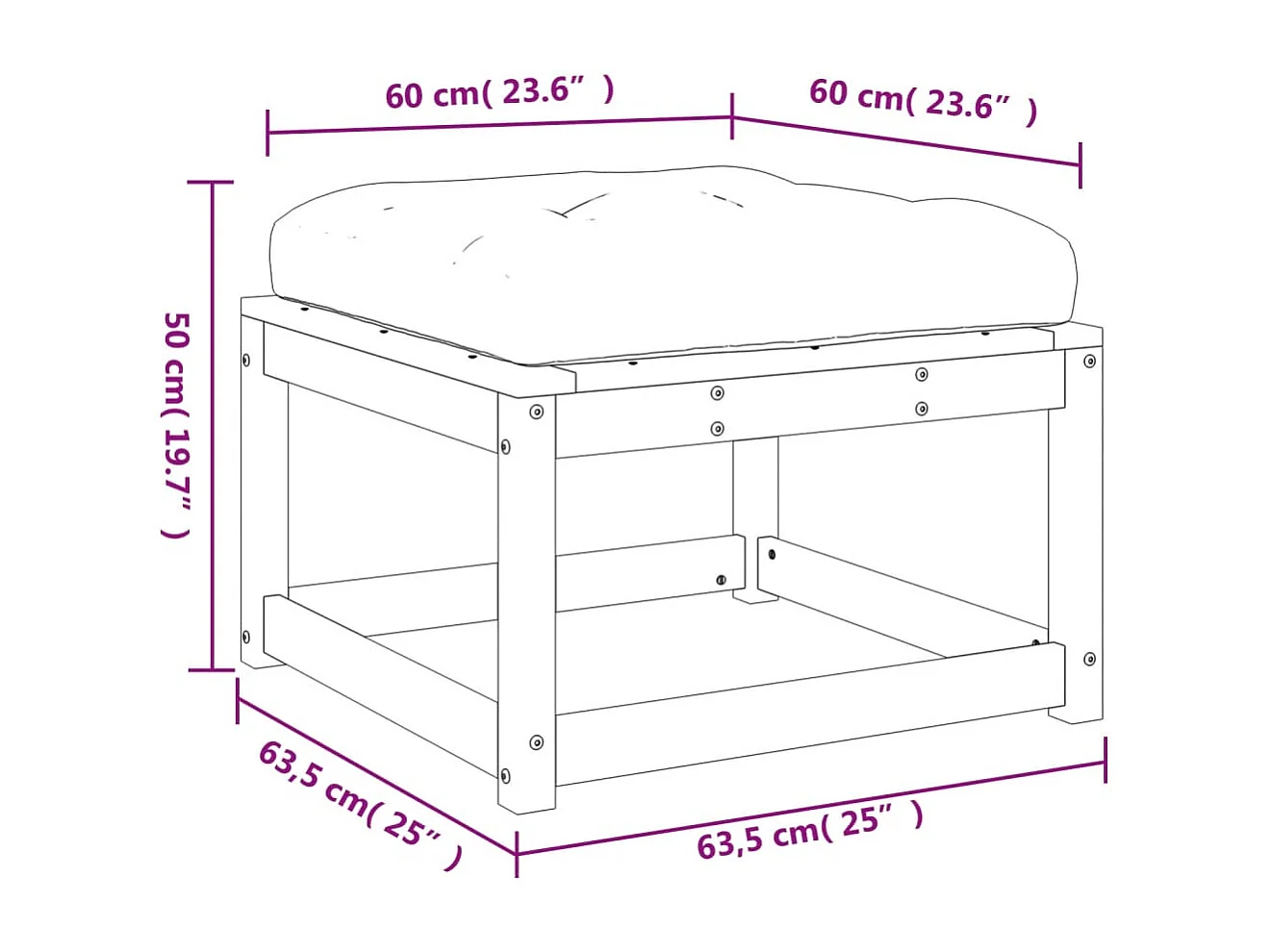 Repose-pied de jardin avec coussins bois de pin imprégné