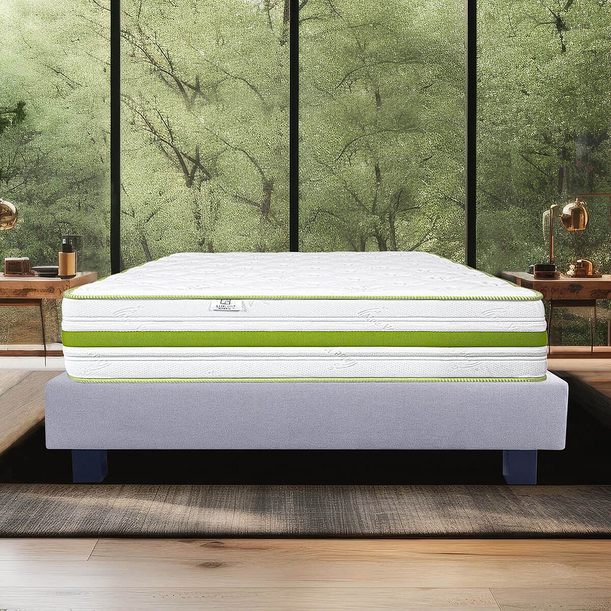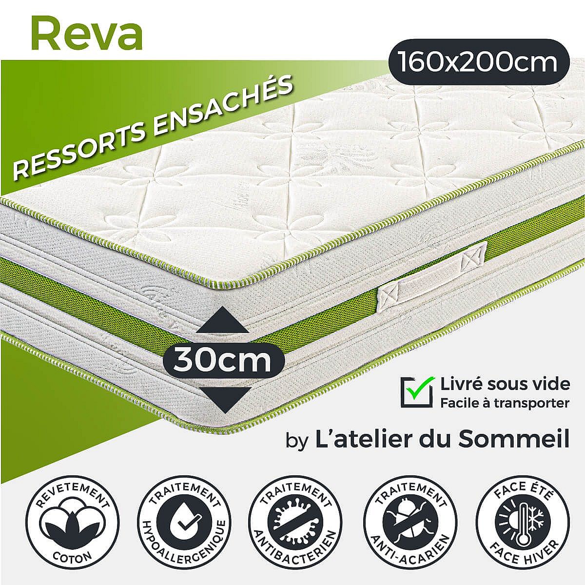 REVA - Ensemble Matelas Mousse Ep.30cm + Sommier Tapissier Gris 160x200 cm