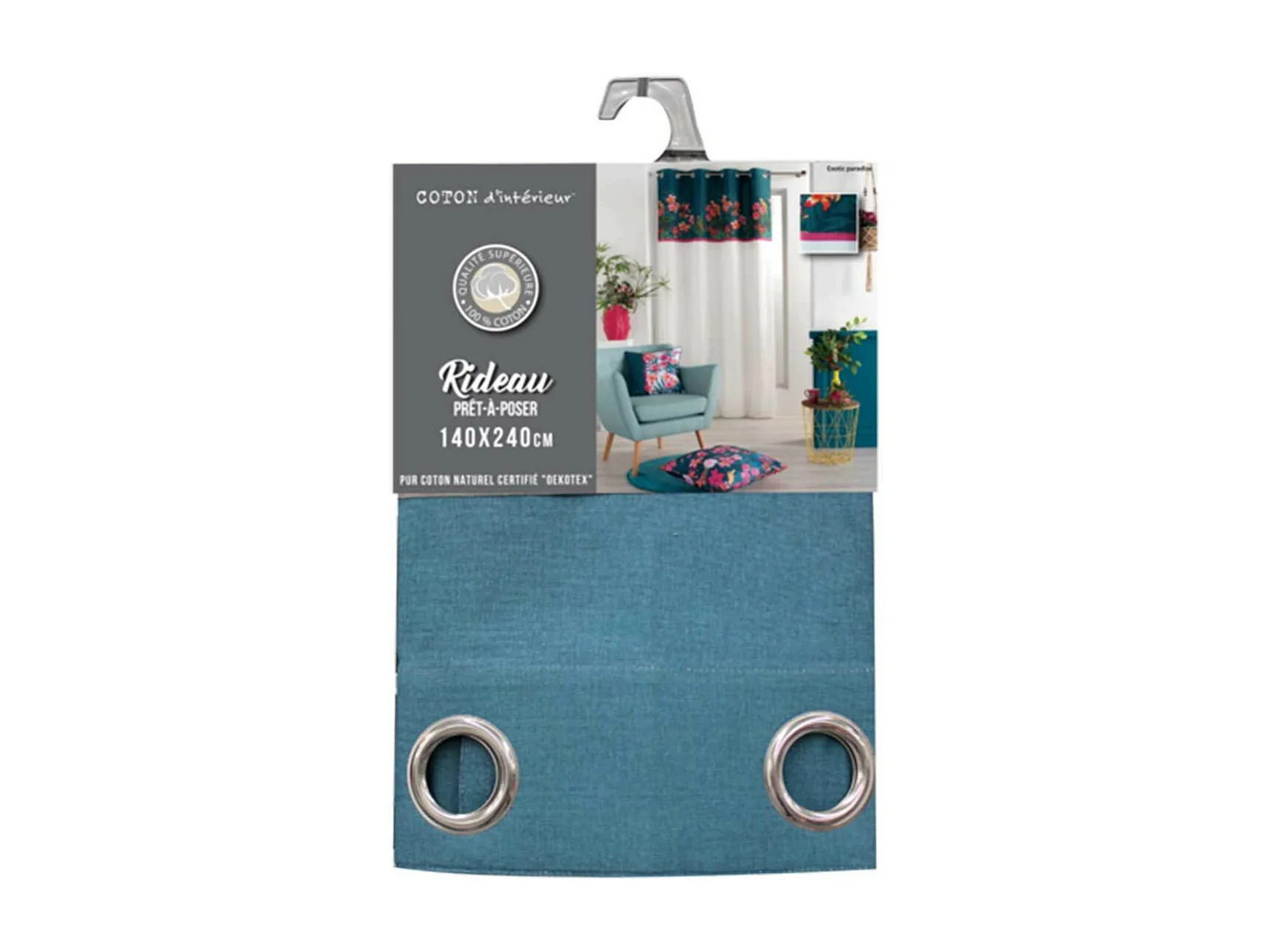 SOPHIE - Rideau 140x260cm Coton Coloris Paon ?illets Inox