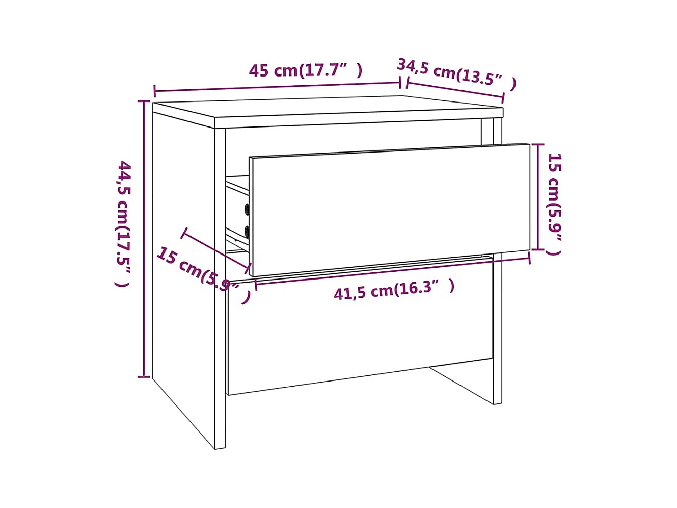 Robert Table de chevet noir 45x34,5x44,5 cm bois d’ingénierie