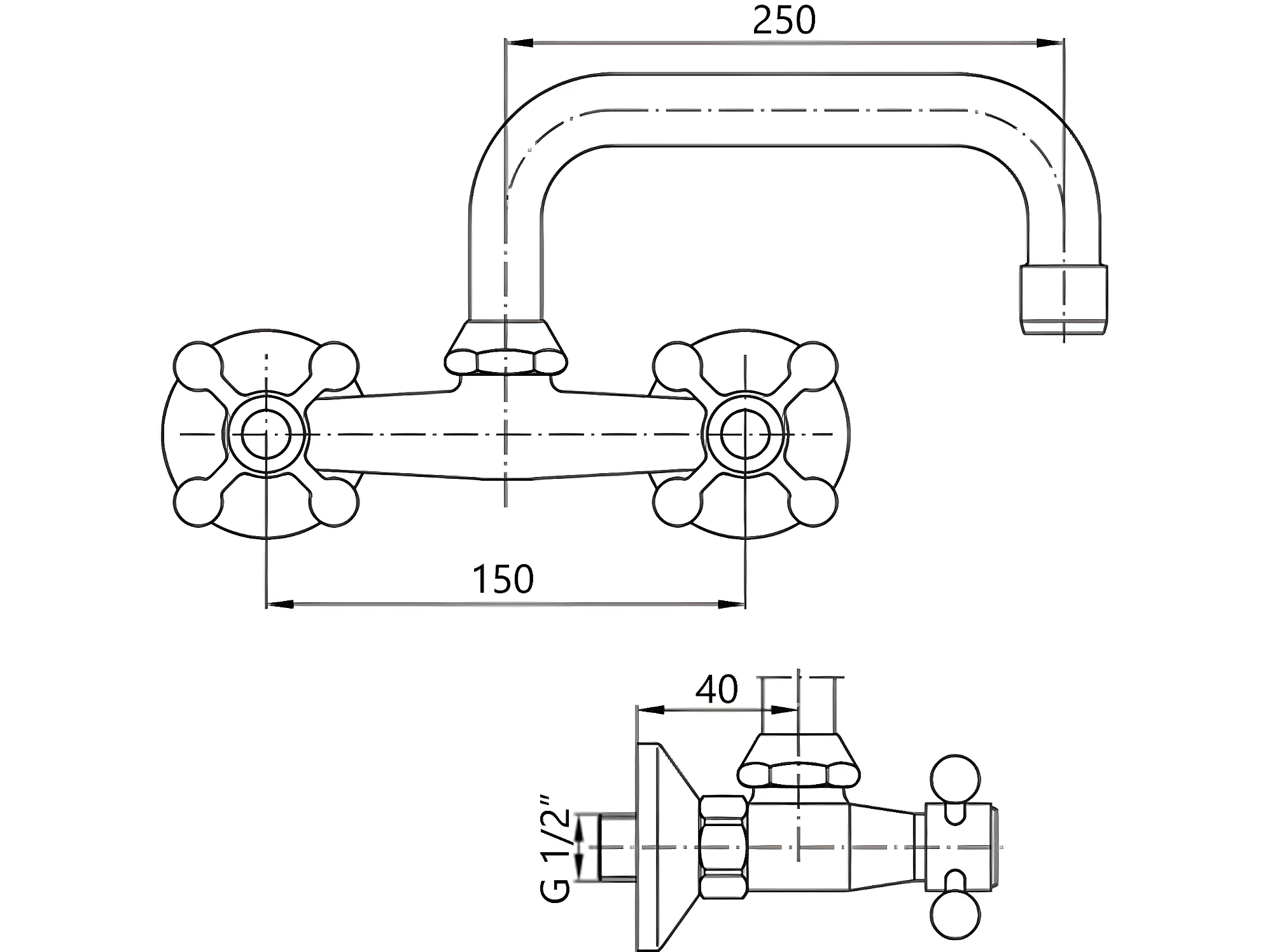 Robinet Cuisine Mitigeur Chrome Mural Manettes Croisillons Bec Supérieur