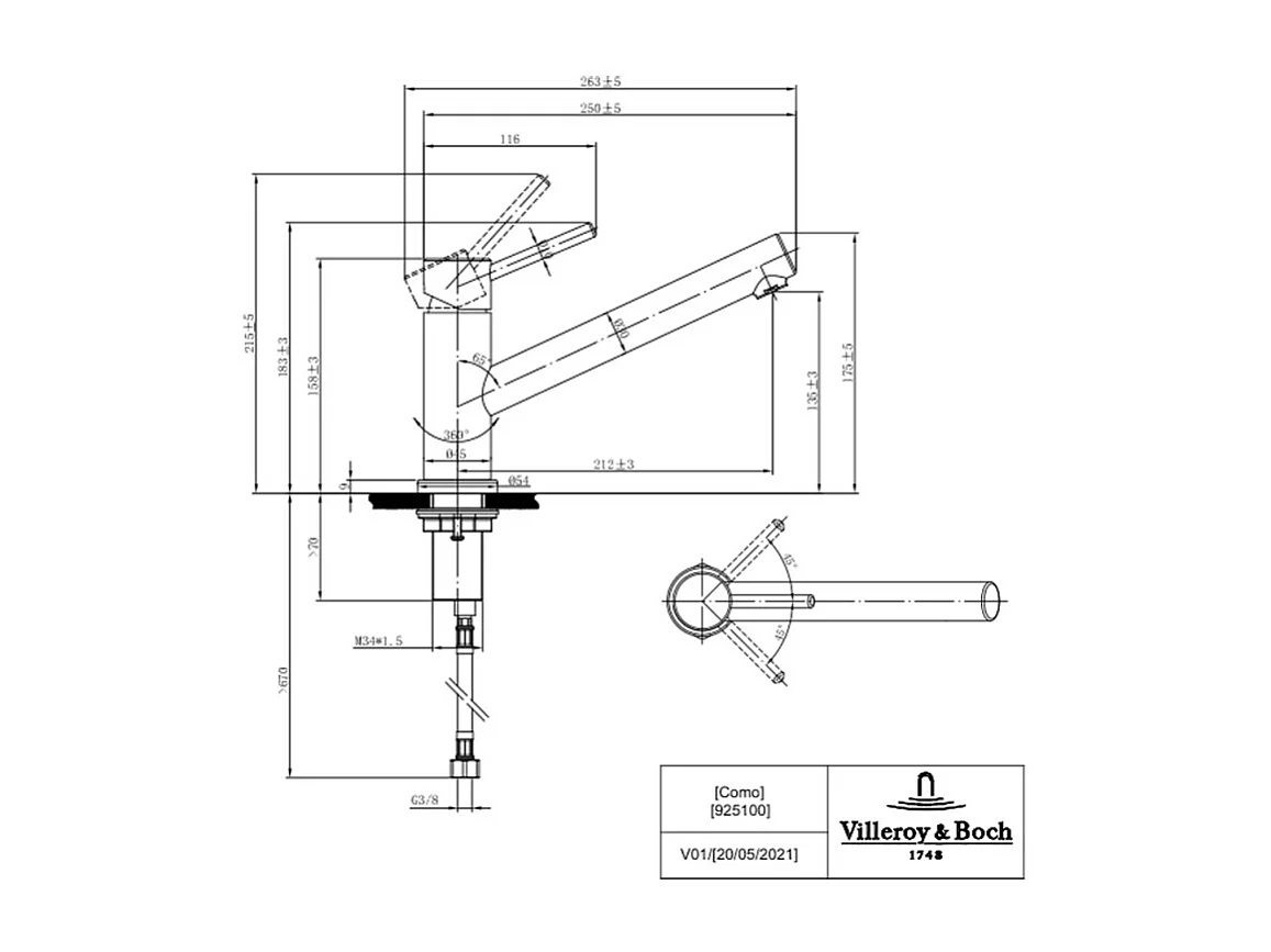 Robinet cuisine VILLEROY ET BOCH Como Acier massif + nettoyant