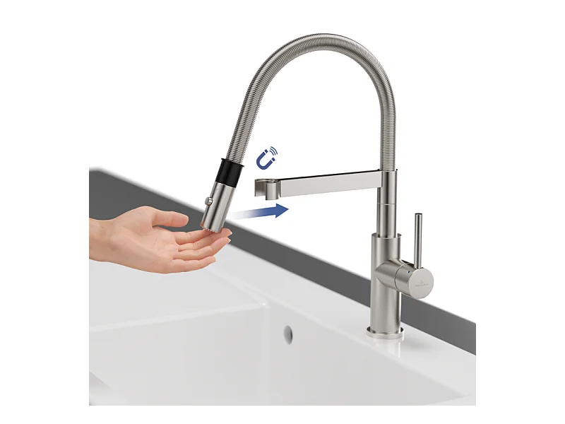 Robinet cuisine VILLEROY ET BOCH Steel expert compact acier massif + nettoyant